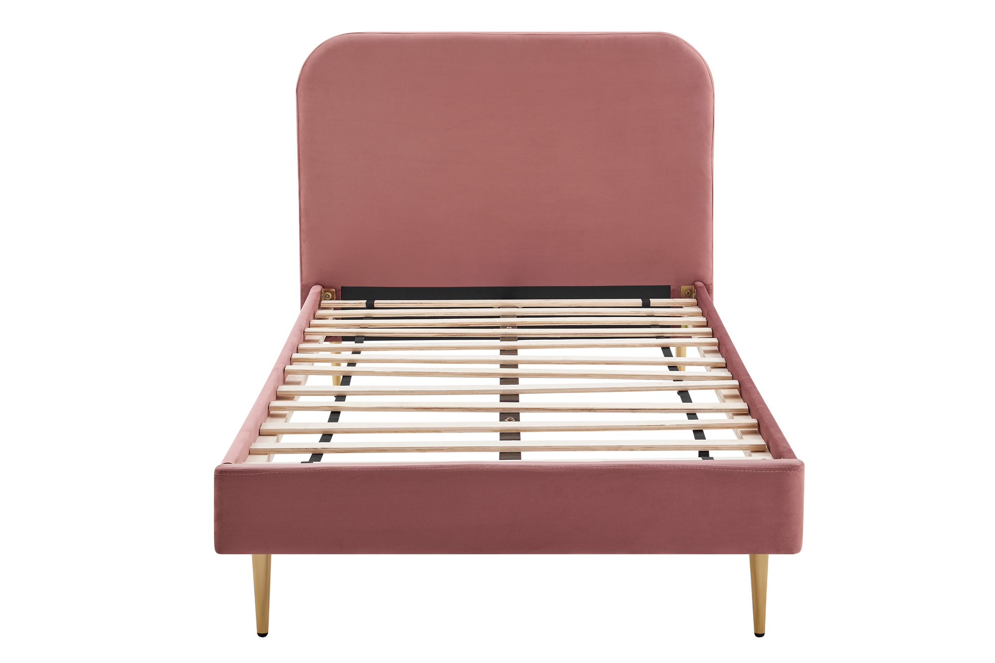 Ce lit rembourré doté d’un revêtement en velours de qualité supérieure confèrera un charme raffiné à votre espace de nuit. Le design aux lignes droites et les lignes épurées de ce lit en font le complément idéal dans de nombreux univers et styles d’aménagement. Les pieds chromés dorés contrastent avec la douceur du velours de la structure pour une touche tendance. Un sommier à lattes simple est inclus dans la livraison. L’espace libre de 15 cm sous le lit peut être utilisé de manière optimale comme espace de rangement, par exemple pour des boîtes plates contenant du linge de lit ou des vêtements de saison. Vous trouverez certainement votre bonheur parmi les trois variantes de couleurs et de tailles disponibles.