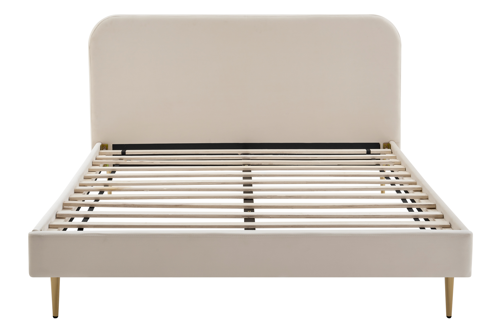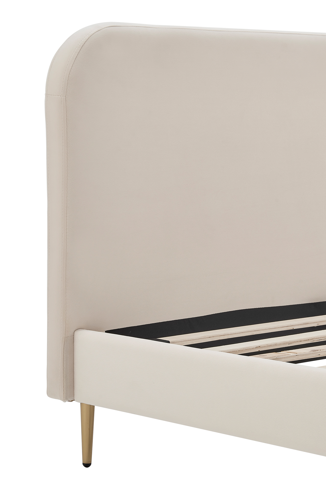 Ce lit rembourré doté d’un revêtement en velours de qualité supérieure confèrera un charme raffiné à votre espace de nuit. Le design aux lignes droites et les lignes épurées de ce lit en font le complément idéal dans de nombreux univers et styles d’aménagement. Les pieds chromés dorés contrastent avec la douceur du velours de la structure pour une touche tendance. Un sommier à lattes simple est inclus dans la livraison. L’espace libre de 15 cm sous le lit peut être utilisé de manière optimale comme espace de rangement, par exemple pour des boîtes plates contenant du linge de lit ou des vêtements de saison. Vous trouverez certainement votre bonheur parmi les trois variantes de couleurs et de tailles disponibles.