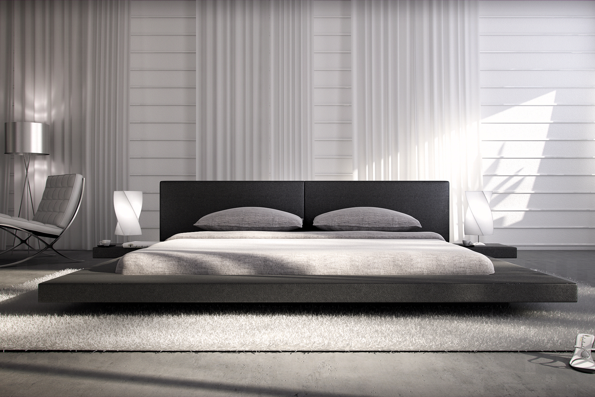 Une véritable perle parmi les lits design. Ce lit rembourré moderne ton noir séduit par ses lignes épurées. Sa faible hauteur et ses pieds décalés très bas sous le lit lui confèrent un design aérien. Le revêtement chic est en cuir synthétique facile d’entretien. Le lit est équipé d’une traverse centrale autoportante. Profitez de la possibilité d’utiliser deux petits matelas ou un grand matelas avec des degrés de fermeté différents. C’est un véritable avantage pour les couples qui ont des habitudes de sommeil différentes. Les deux tables de chevet, harmonieusement intégrées dans le design global du lit, sont particulièrement raffinées. Les bandes LED créeront une ambiance agréable et chaleureuse dans votre chambre à coucher : la solution idéale pour les longues soirées télé ou lecture. Avec ce petit bijou de design, vous pourrez créer un espace de repos personnalisé dans votre chambre à coucher.