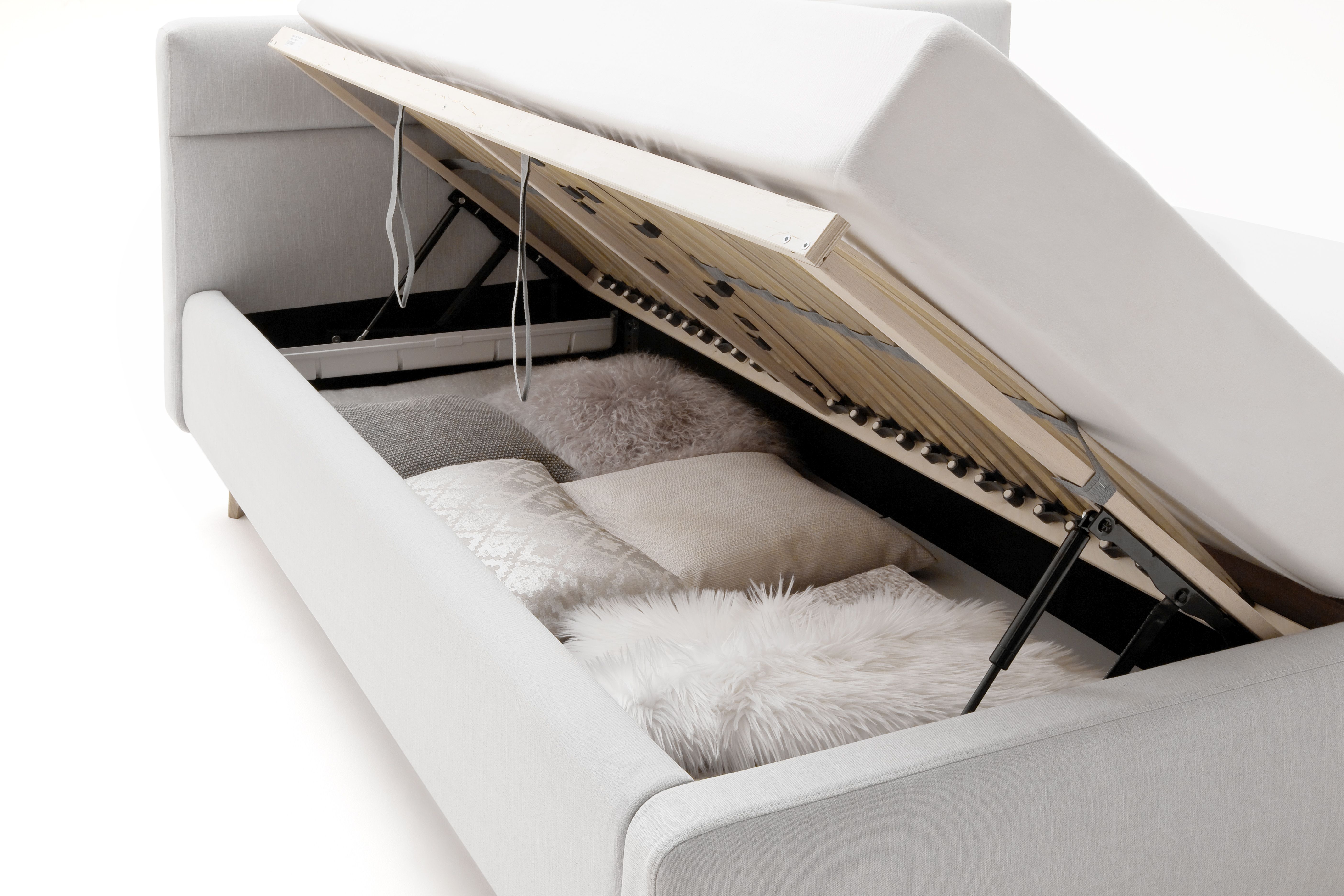 inclus : 2 coffres de lit avec aération et sommiers à lattes multiplis avec ouverture latérale