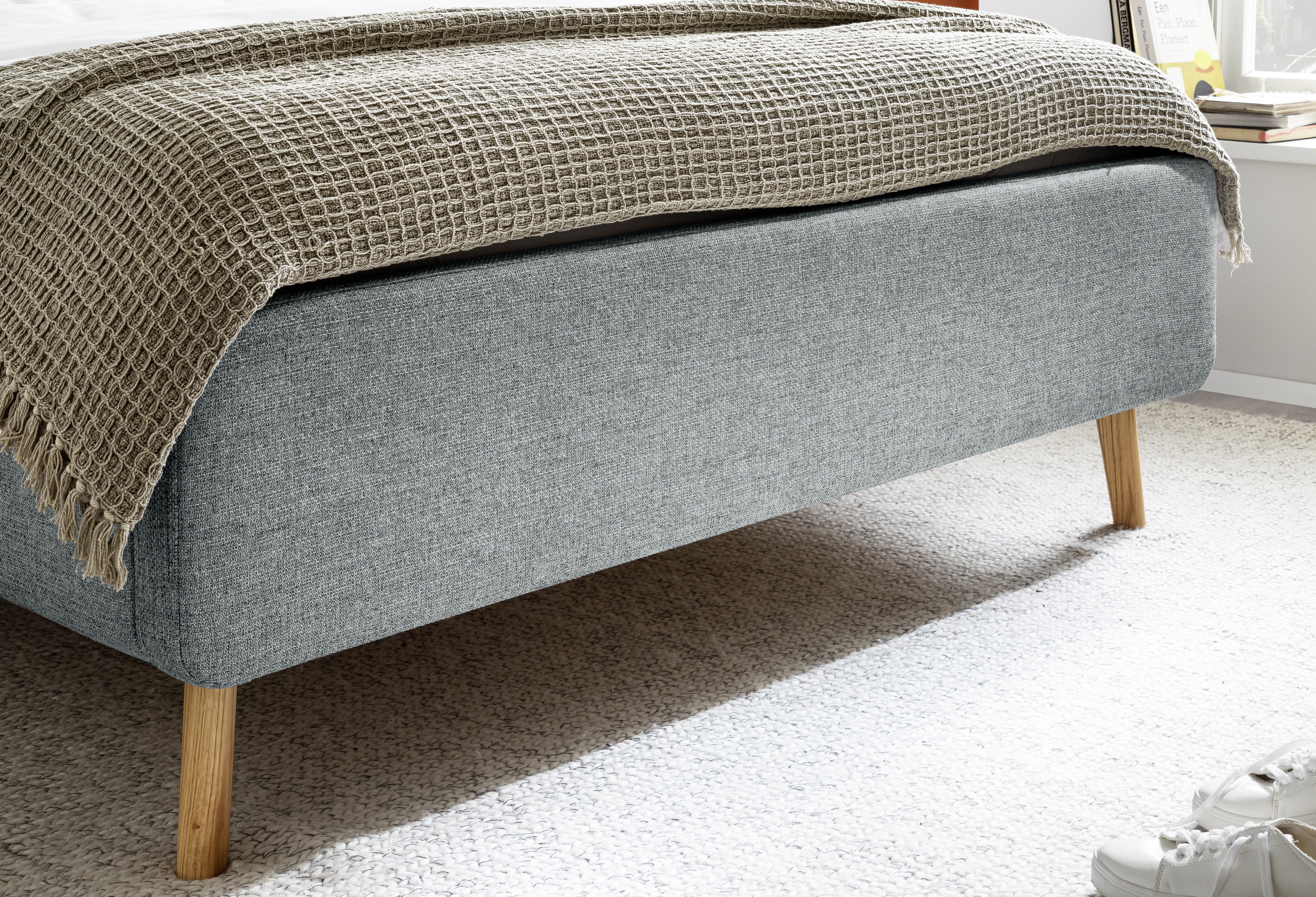 Inclus : coffre de lit avec aération et sommiers à lattes en bois multiplis avec ouverture latérale