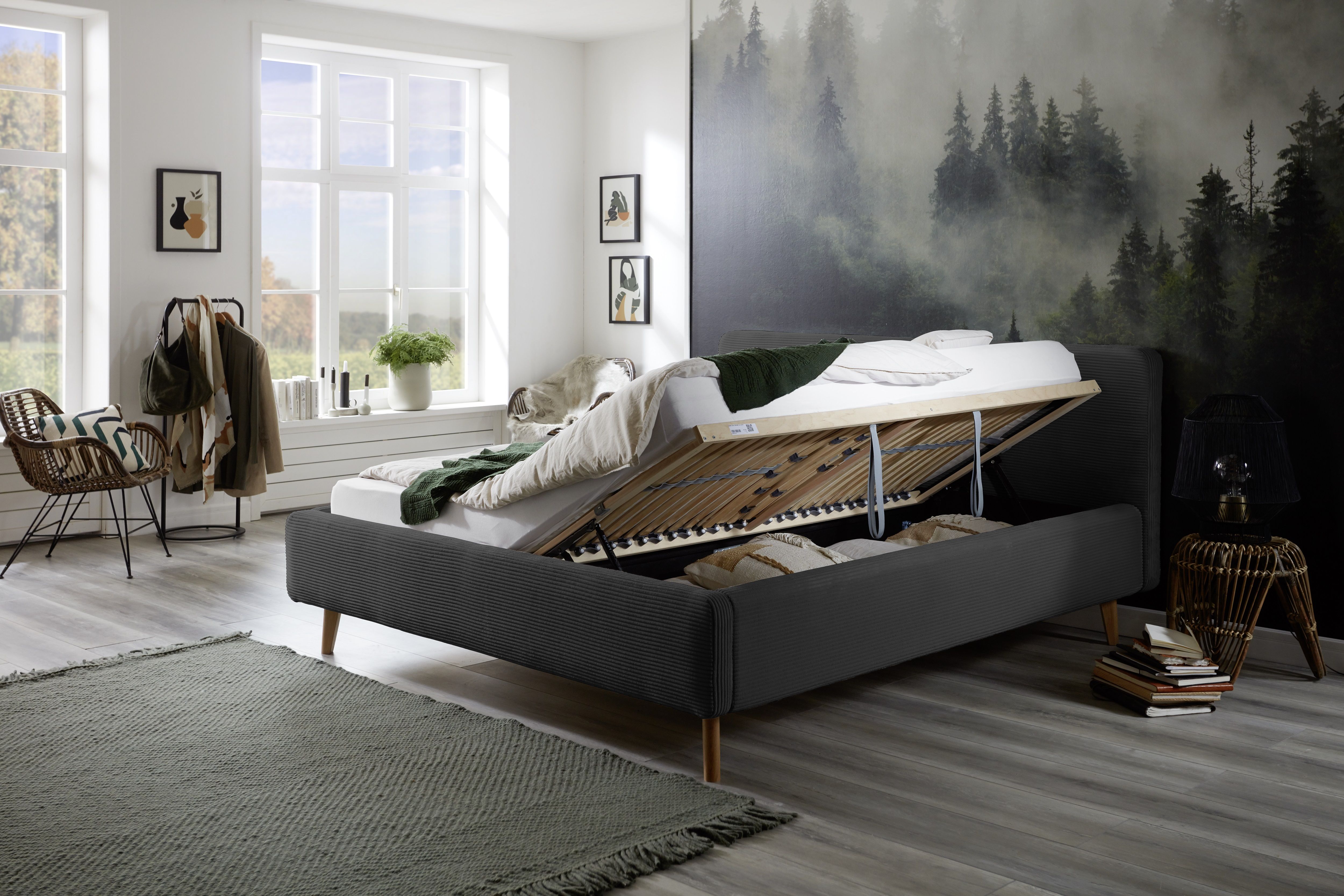 inclus : coffre de lit et sommier à lattes multiplis avec ouverture latérale