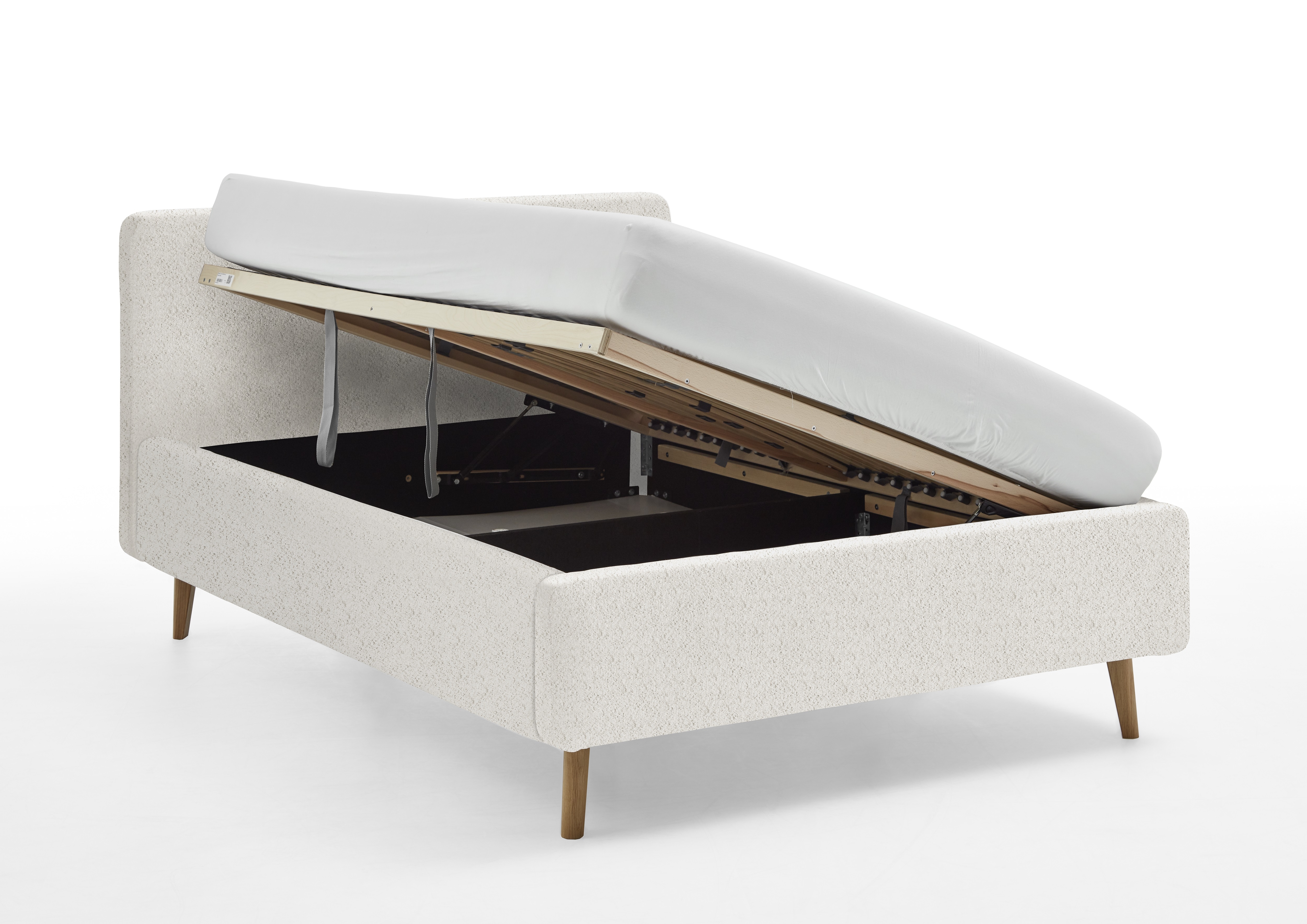 inclus : un coffre de lit avec aération et sommier à lattes en bois multiplis avec ouverture latérale