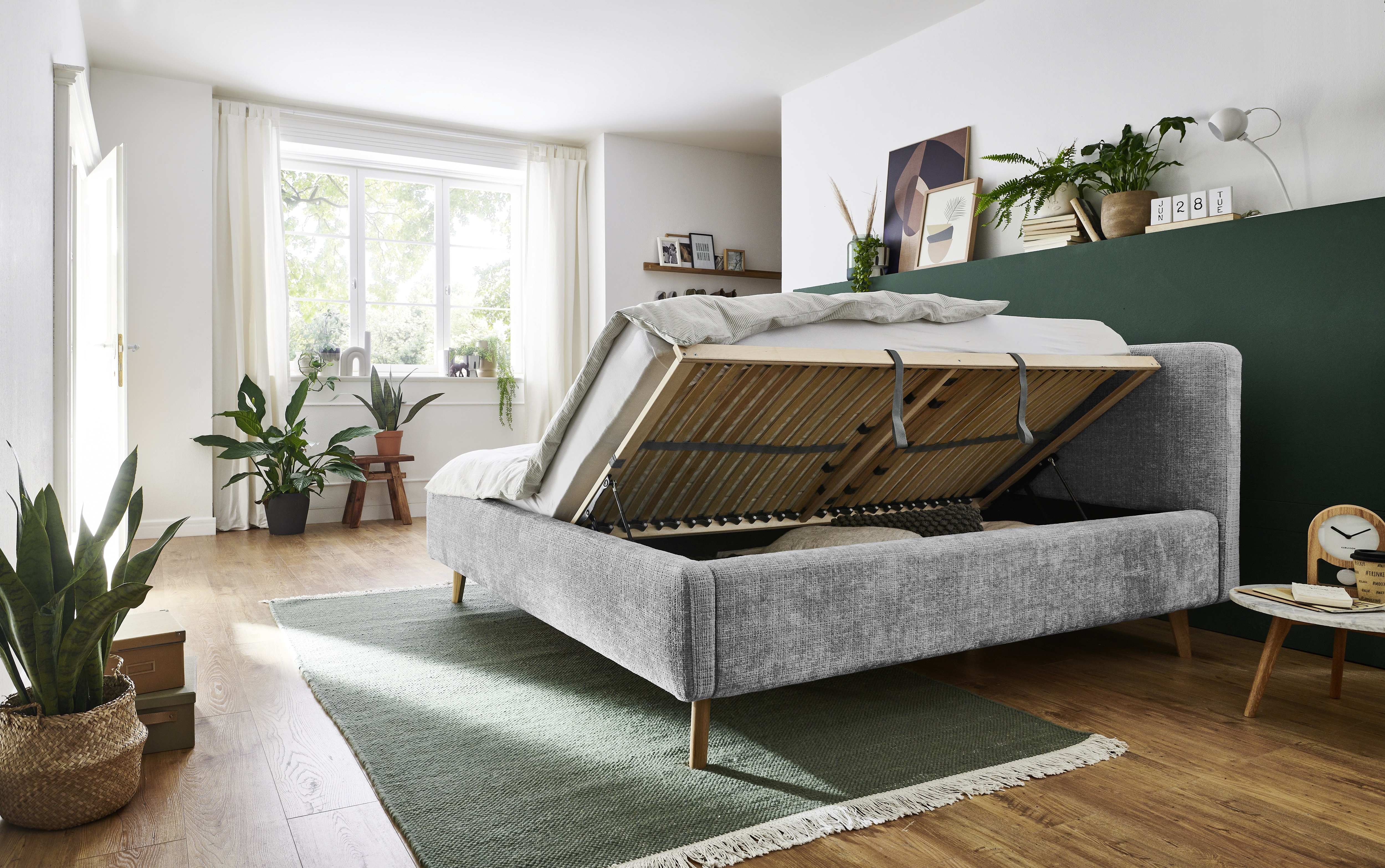 inclus : 2 coffres de lit avec aération et sommiers à lattes en bois multiplis avec ouverture latérale