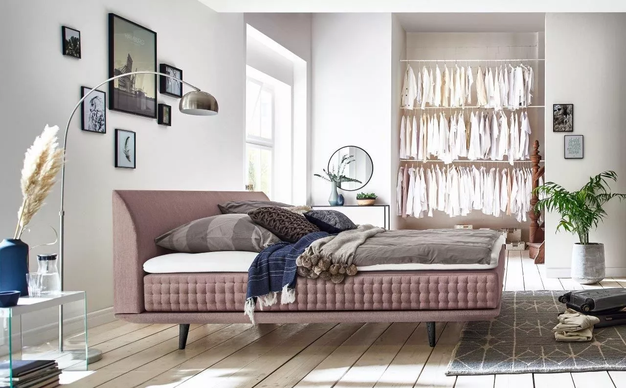 Revêtement lit rembourré : tissu Anouk 23 ton rose 100% polyester