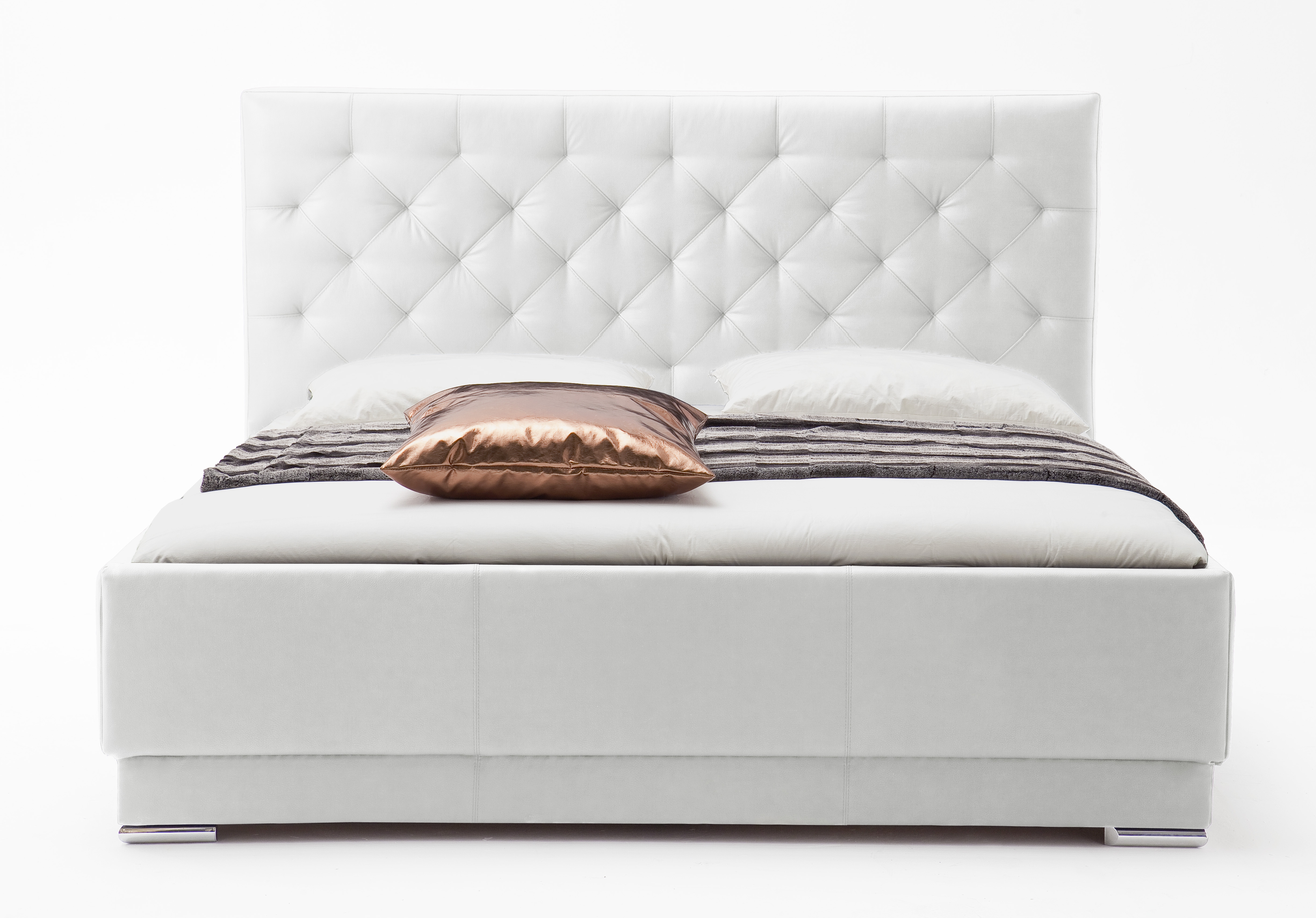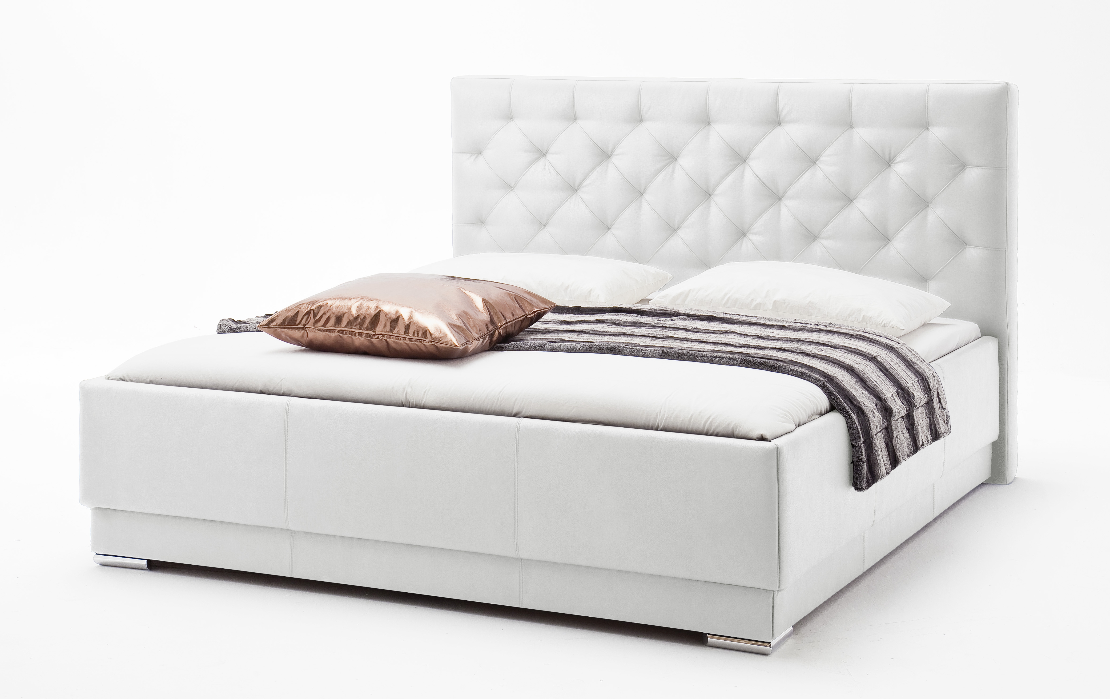 Lit rembourré ton blanc avec revêtement en cuir synthétique : face avant 100% polyuréthane, dos : 40% coton, 60% polyester