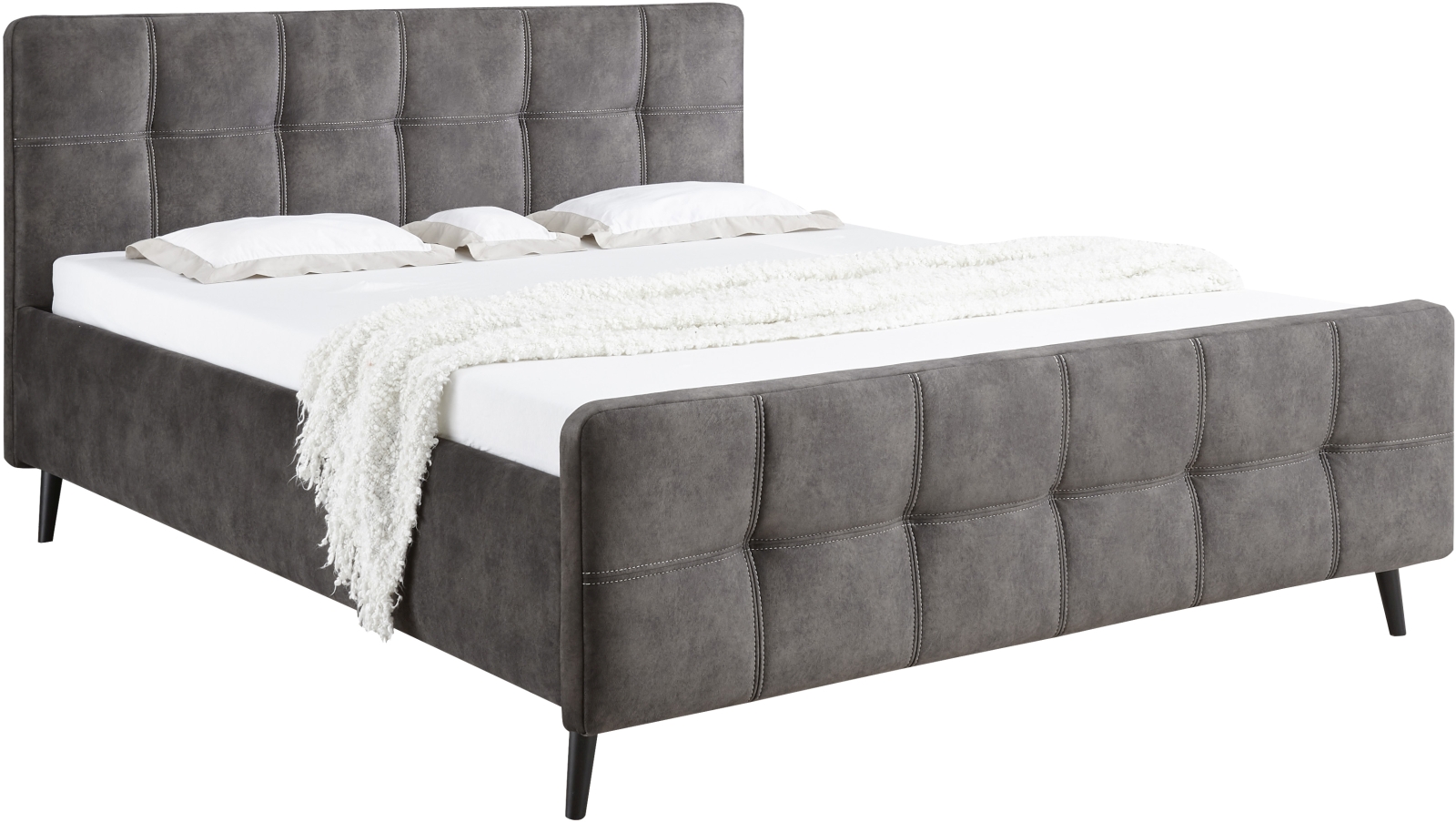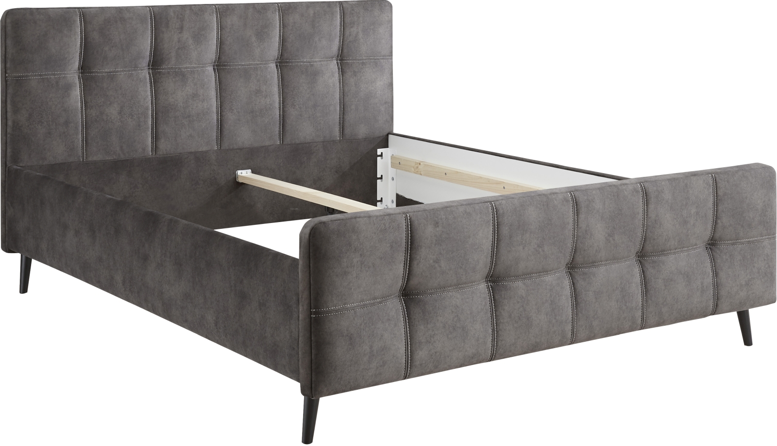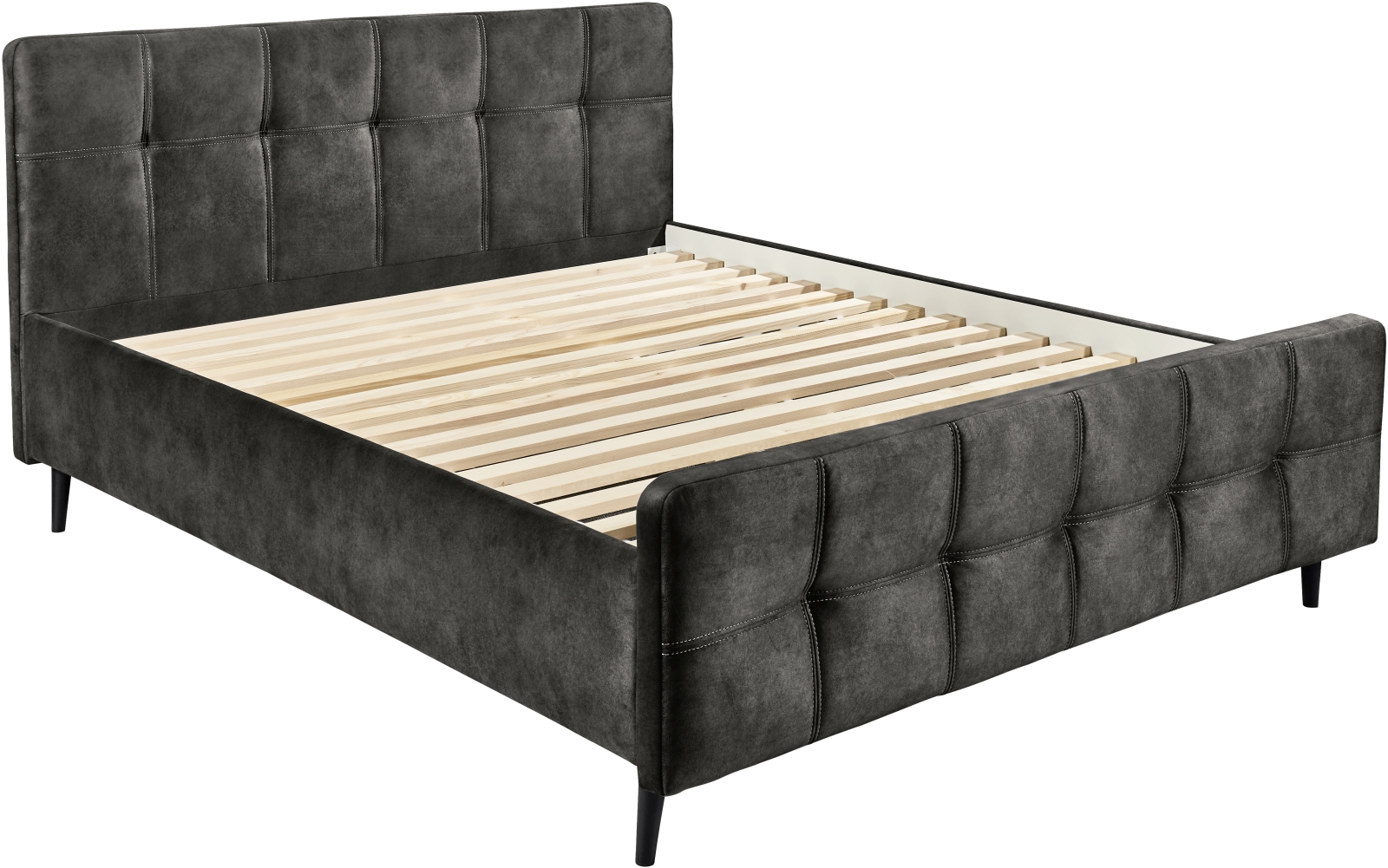 1 cadre de lit avec tête de lit et pied de lit capitonnés