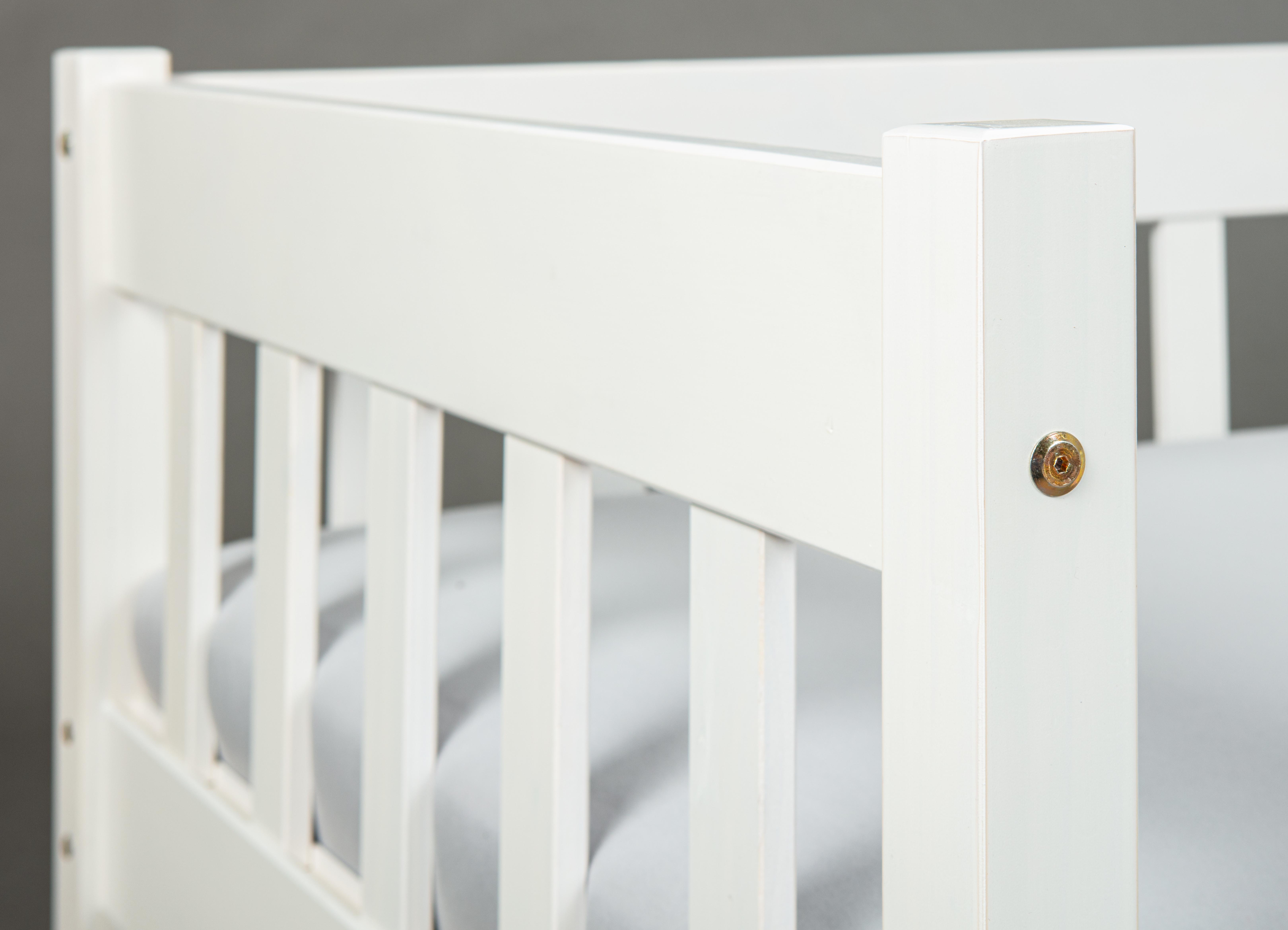 Fabriqué en bois massif laqué blanc, il s’intègre idéalement dans une chambre d’enfant ou d’amis.