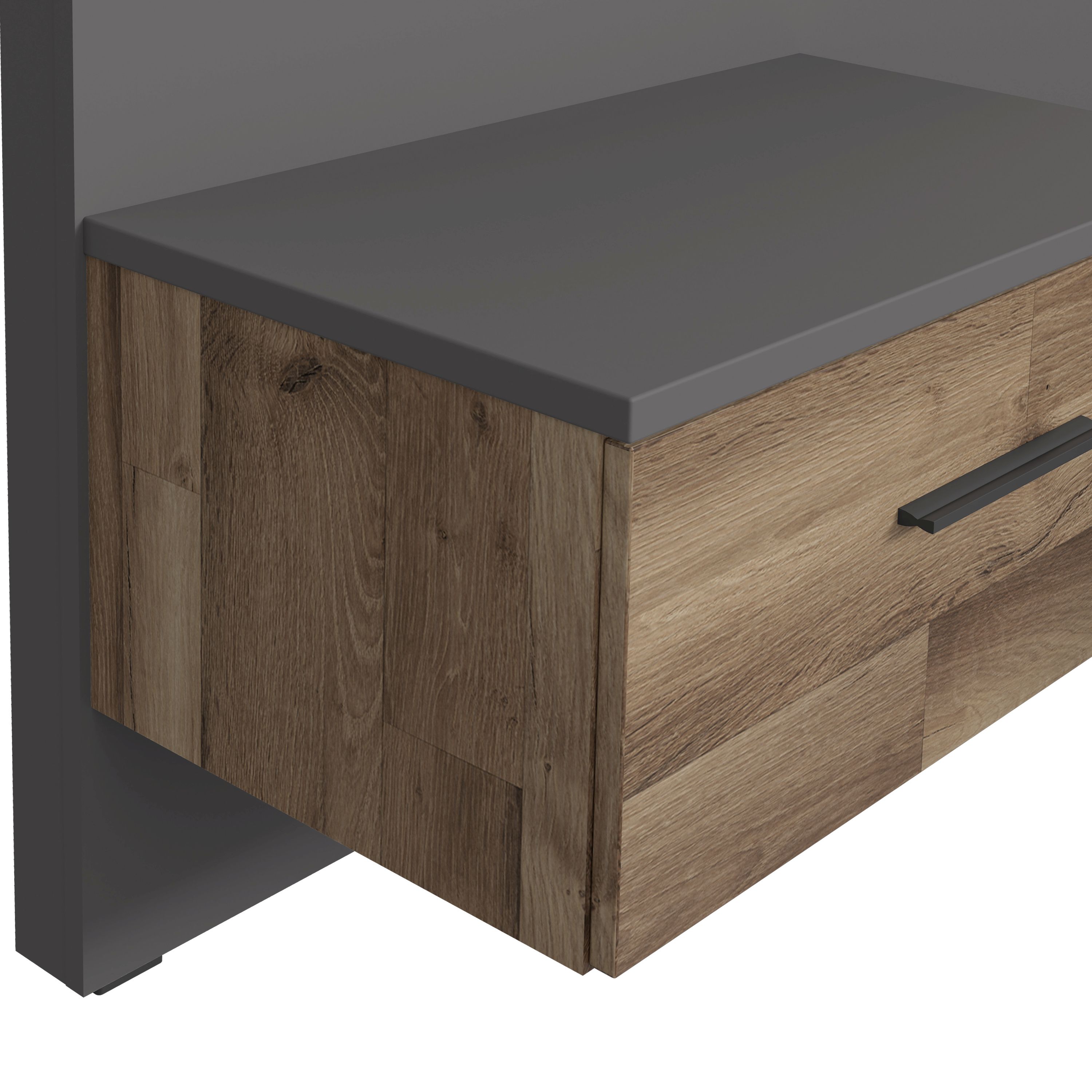 Caisson : décor lattes de chêne et ton tungstène gris uni