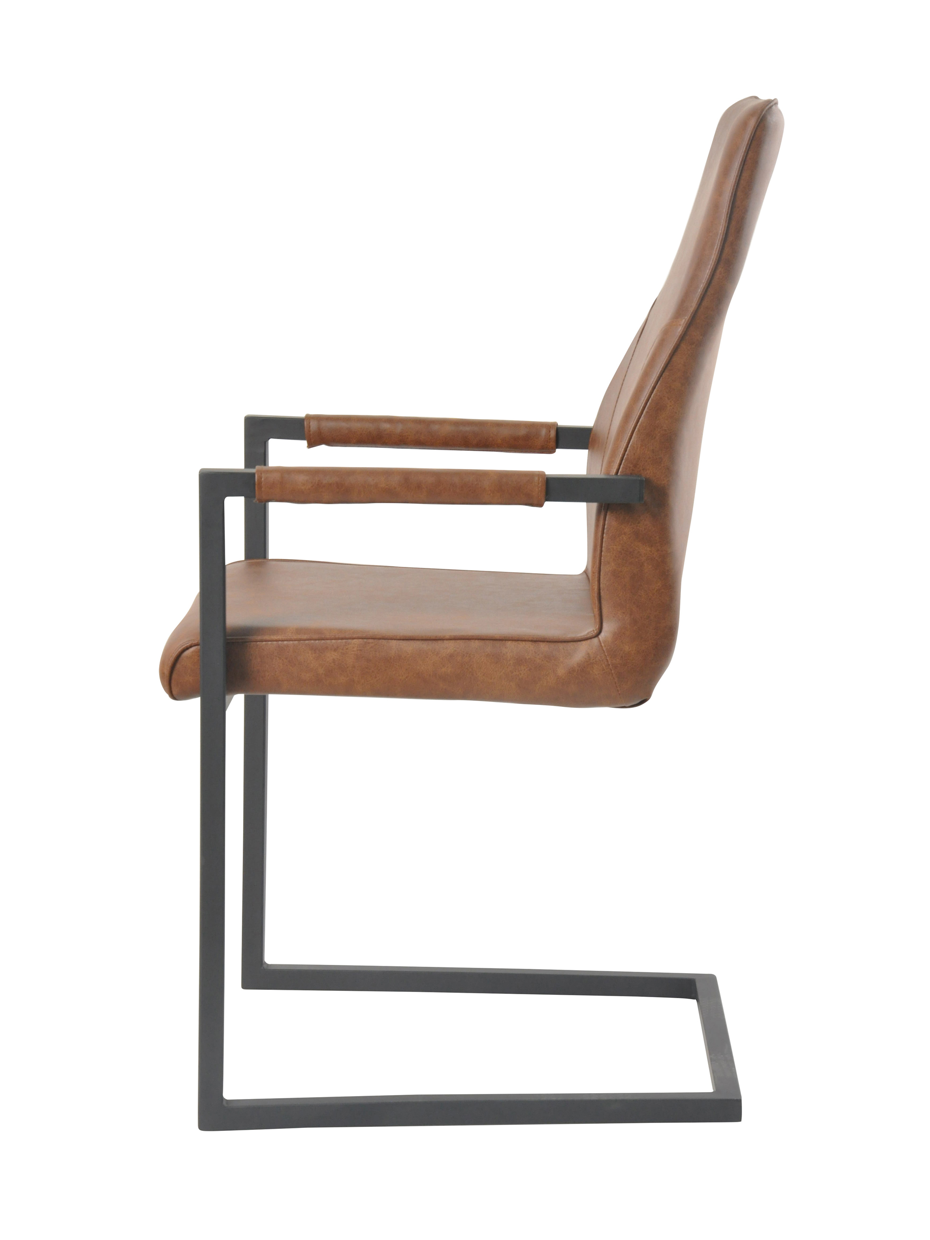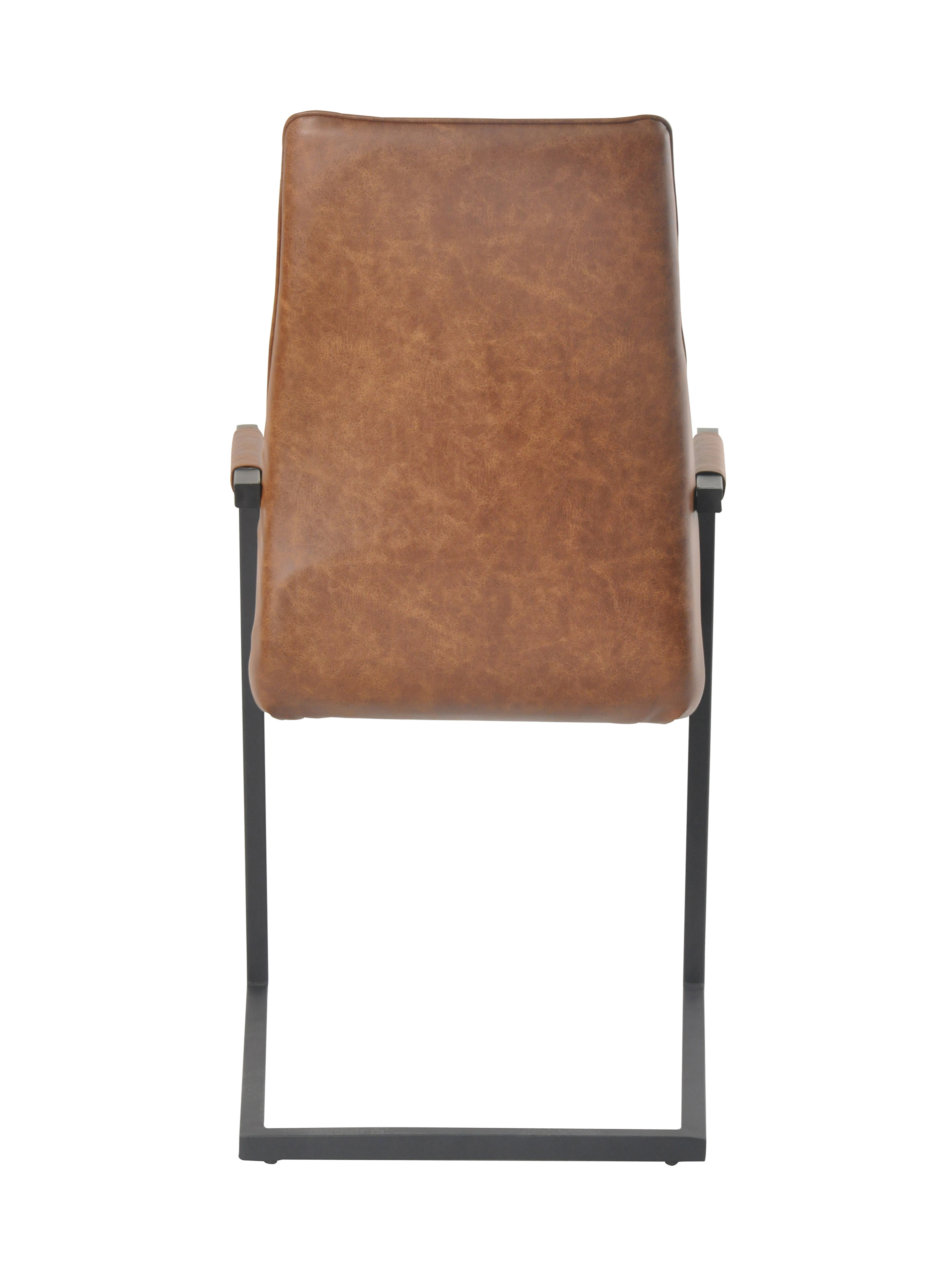 Lot de 2 jolies chaises à piètement luge. Les accoudoirs, ainsi que l'assise et le dossier, sont recouverts d'un revêtement de qualité aspect cuir. Le piètement luge est fabriqué en métal laqué ton noir et garantit une excellente stabilité. Les accoudoirs disposent d'un rembourrage en cuir synthétique et le dossier haut est légèrement incurvé. Grâce au rembourrage confortable, aux accoudoirs et au dossier ergonomique, vous bénéficierez d'un confort d'assise haut de gamme et pourrez vraiment vous détendre.