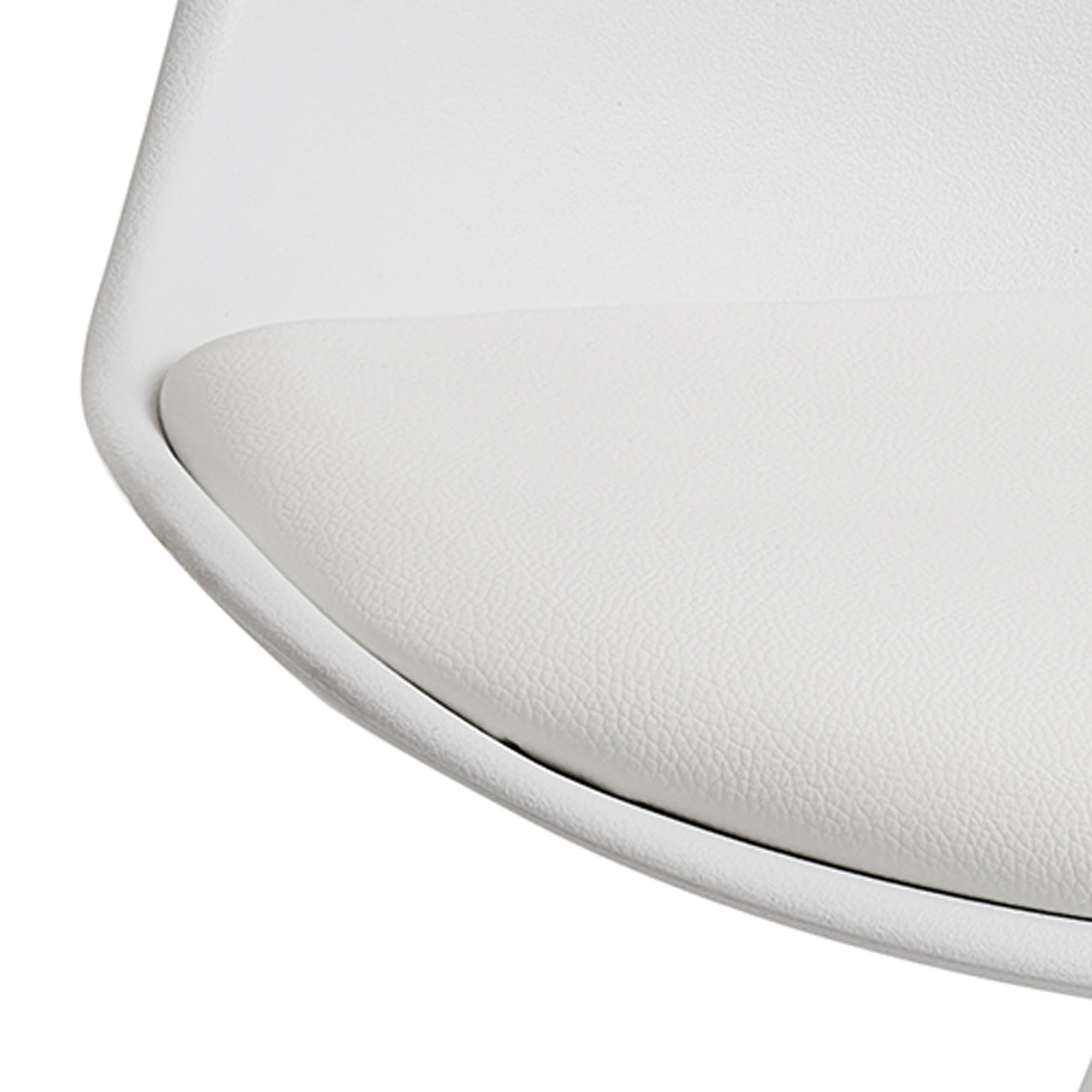 COMPOSITION ✔ La coque de l'assise est en plastique et les pieds de chaise sont en bois massif d'hévéa laqué ton blanc. Le revêtement de l'assise est en cuir synthétique résistant. Un patin de feutre placé sous chaque pied en bois empêche les grincements et la formation de rayures sur le sol.