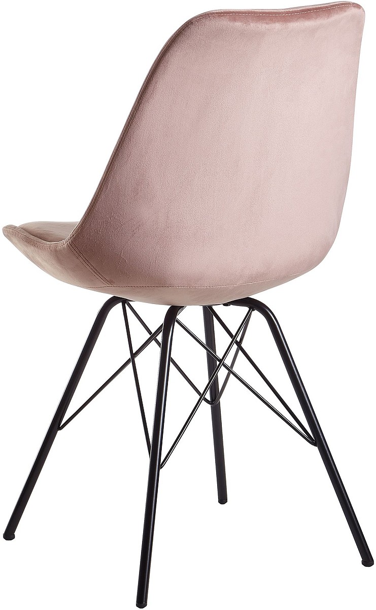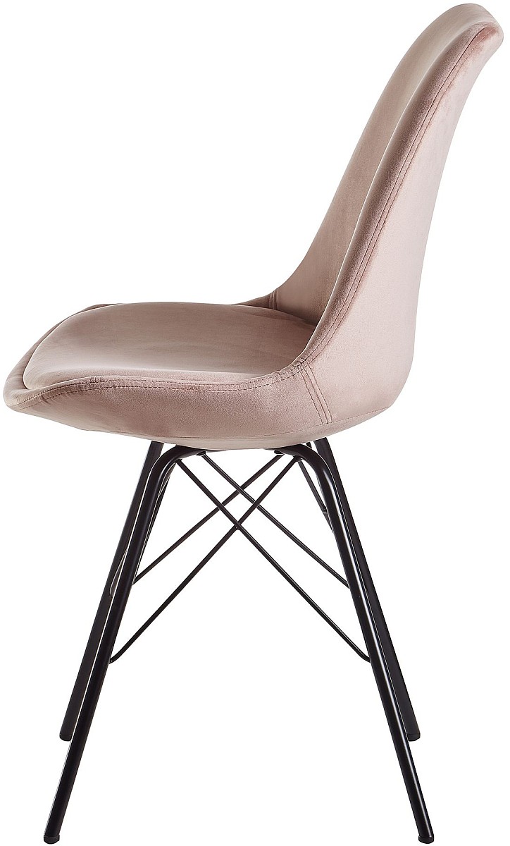 COMPOSITION ✔ La coque des chaises de repas est habillée de velours. Les pieds sont fabriqués en fer.