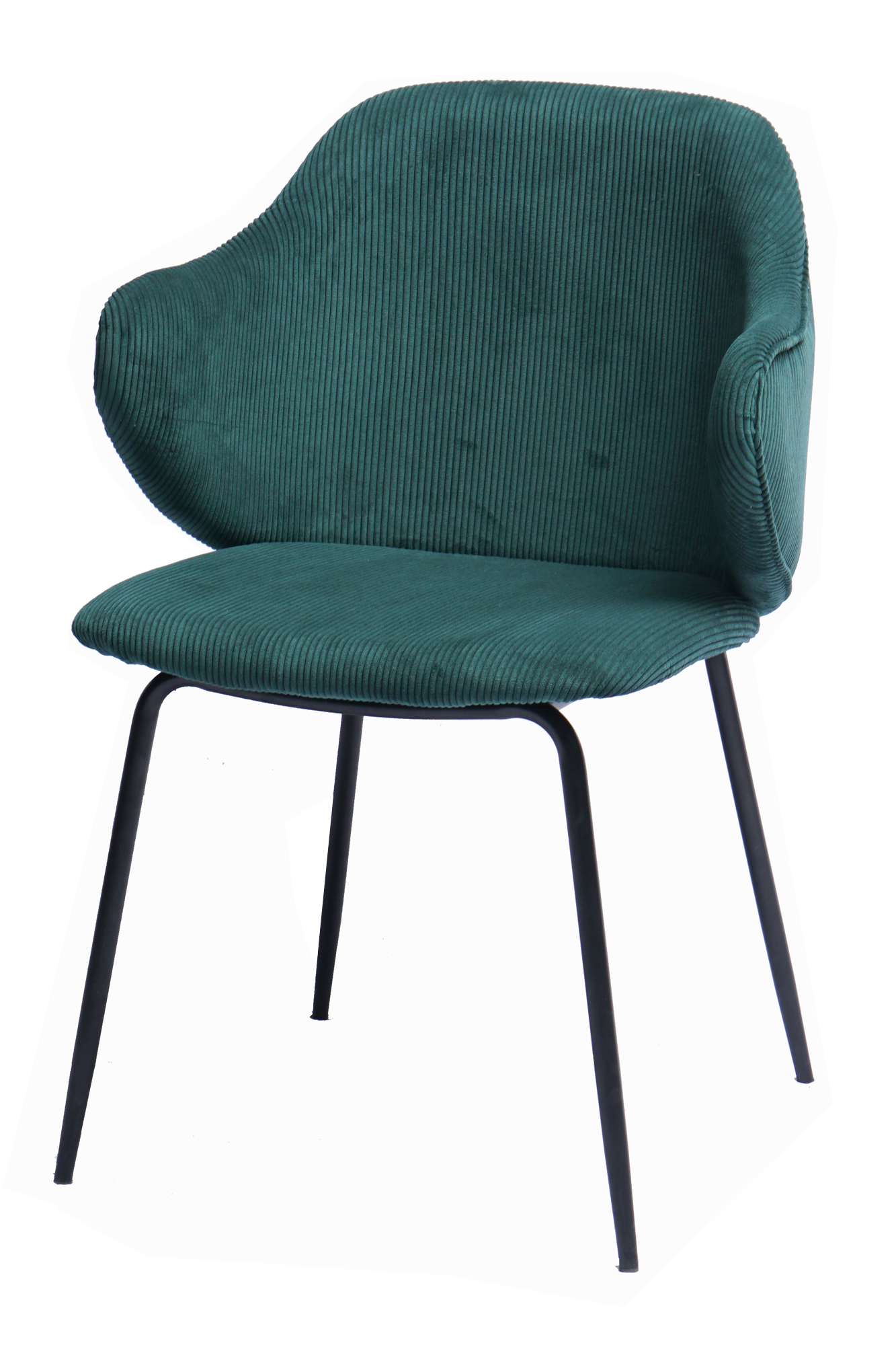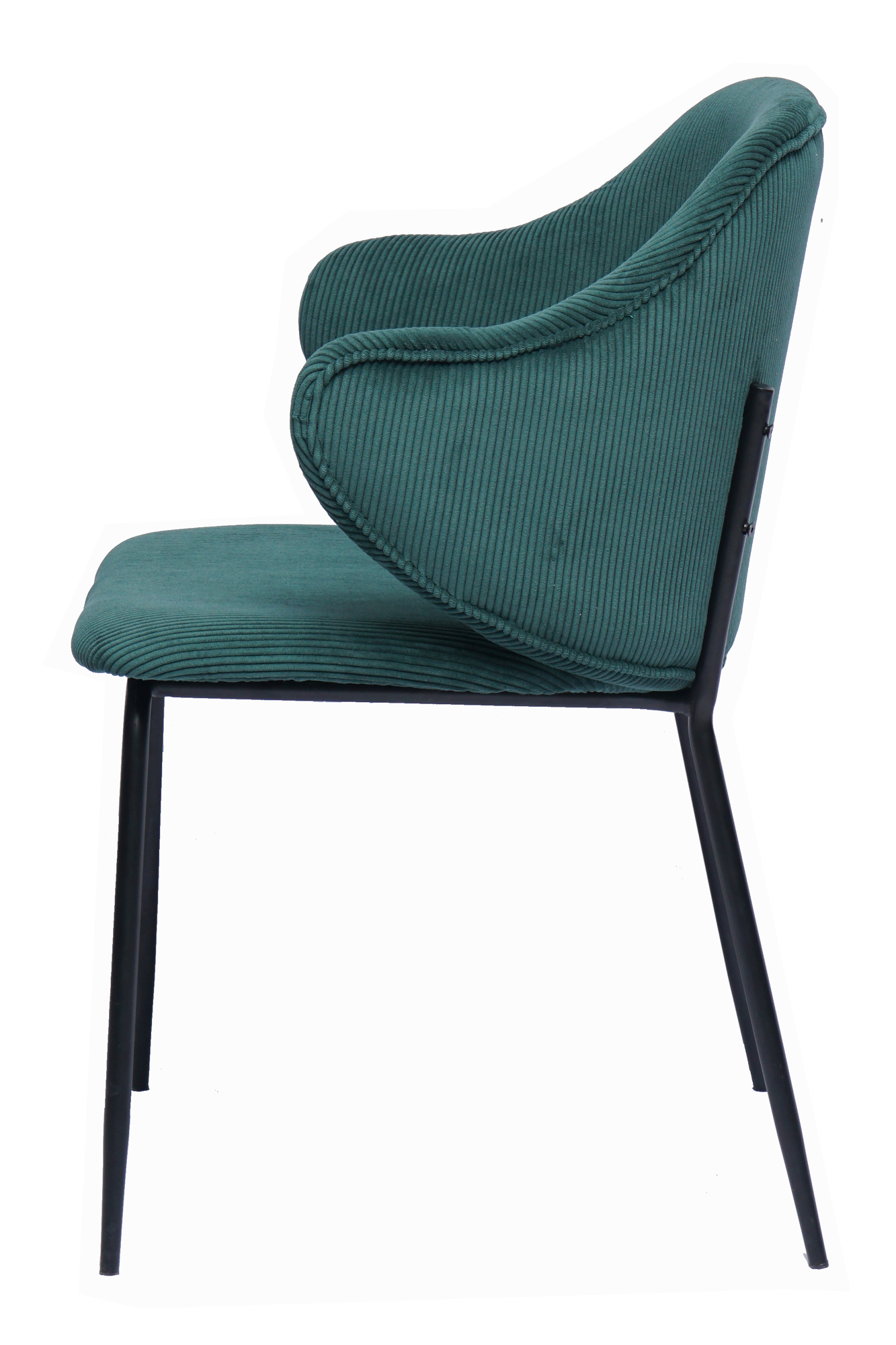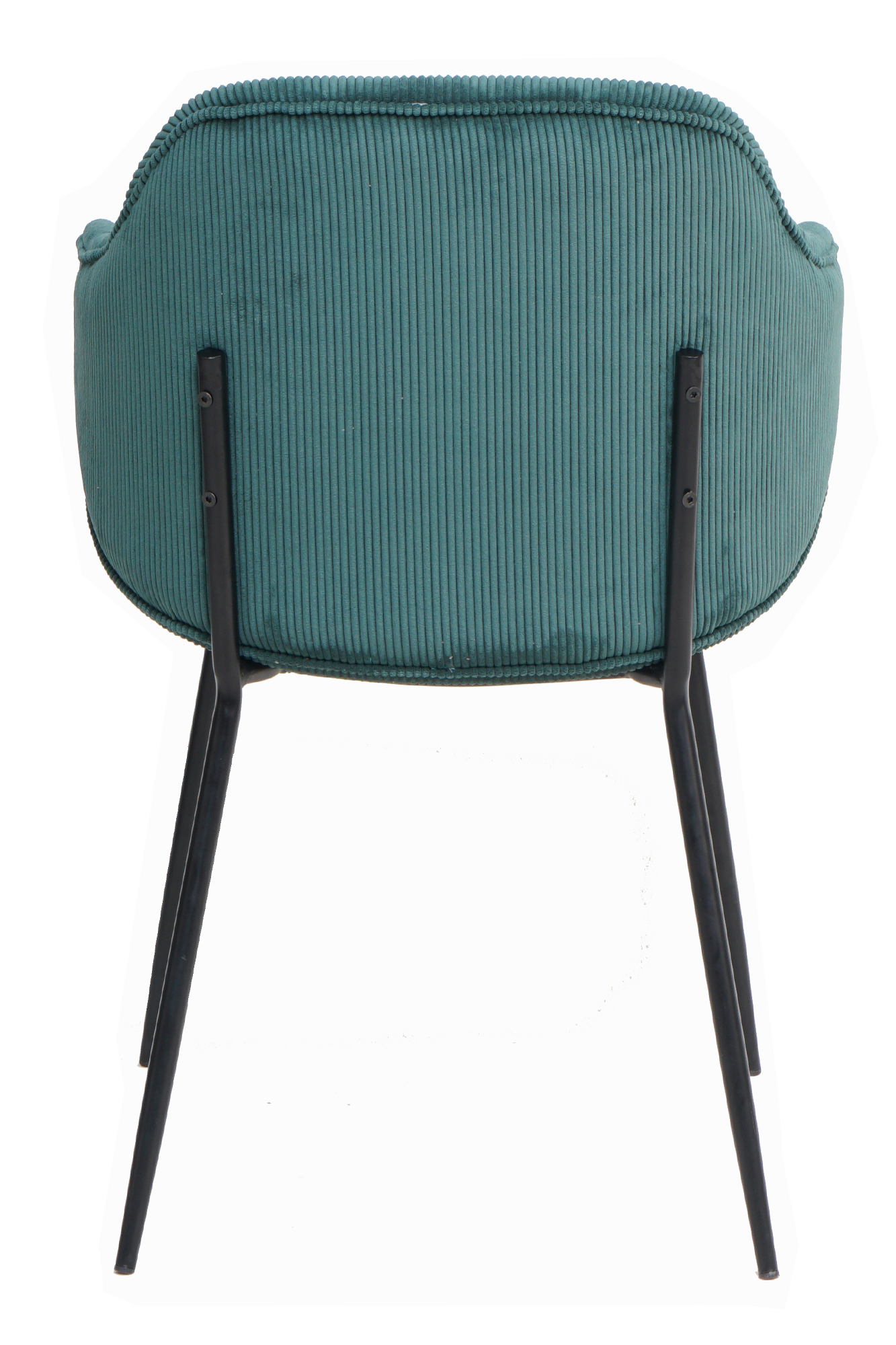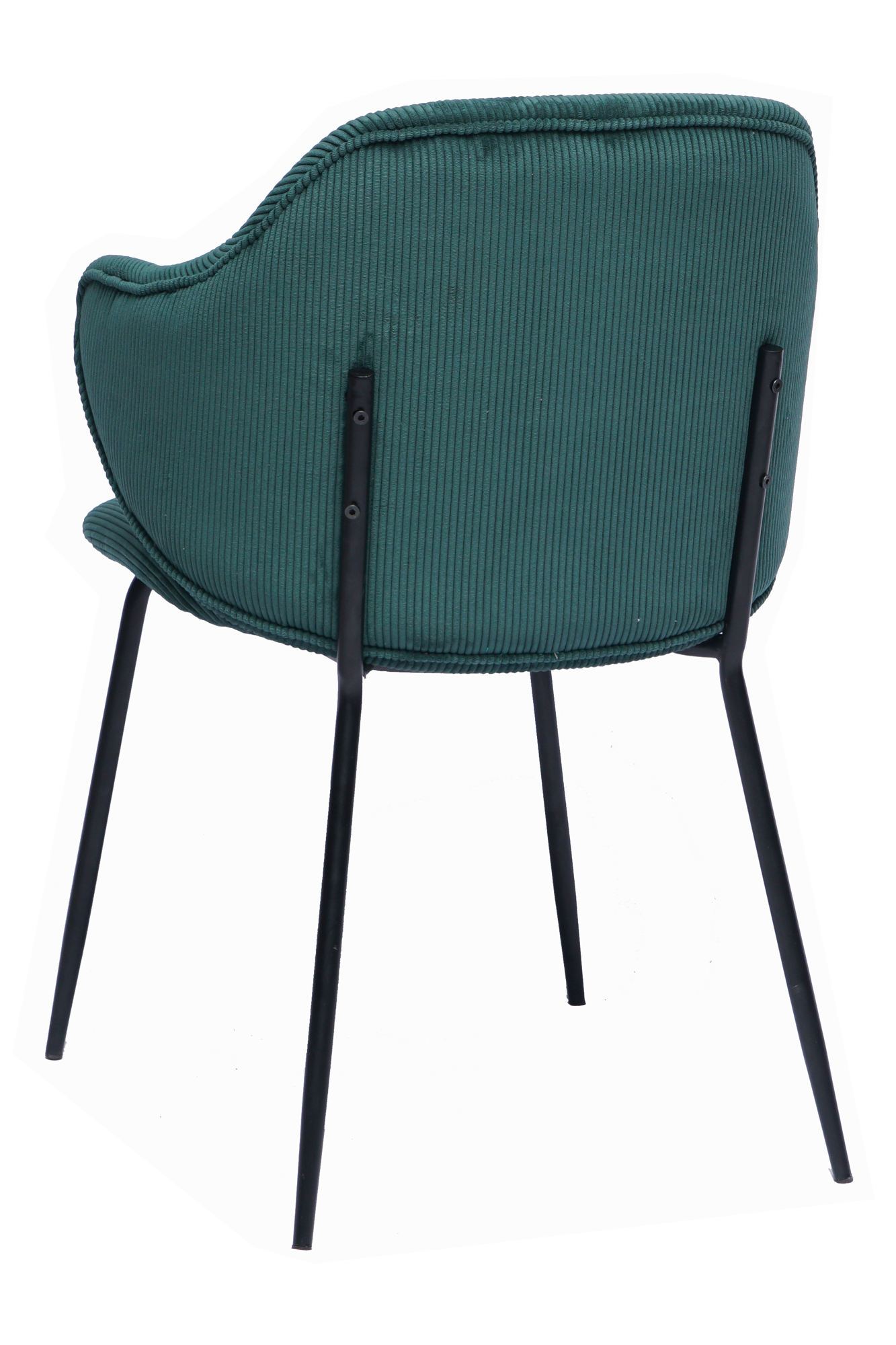Ce lot de 2 chaises à accoudoirs tendance est proposé dans un tissu texturé ton vert foncé. Le piètement fin à 4 pieds en métal finition époxy ton noir mat garantit une excellente stabilité tout en offrant un superbe contraste avec le revêtement de la chaise. Grâce au dossier arrondi et au rembourrage confortable, vous bénéficierez d'un excellent confort d'assise. Les accoudoirs légèrement évasés sont un vrai point fort visuel. Grâce à leur design stylé, les chaises peuvent être placées dans un coin repas, une salle d'attente ou même une salle de réunion. Ce meuble attirera également tous les regards en guise de chaise solo. Vous et vos invités allez adorer votre nouveau siège.