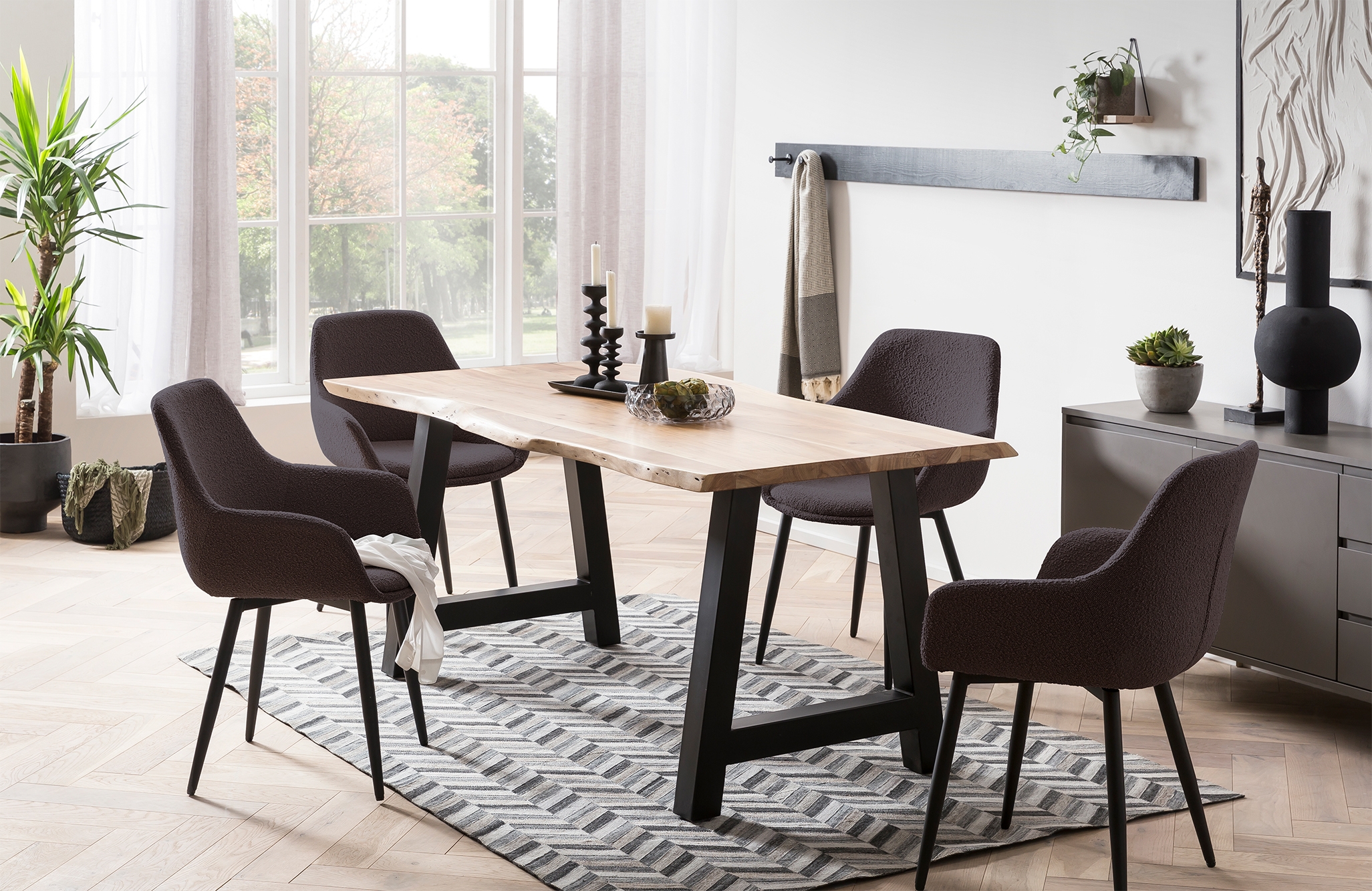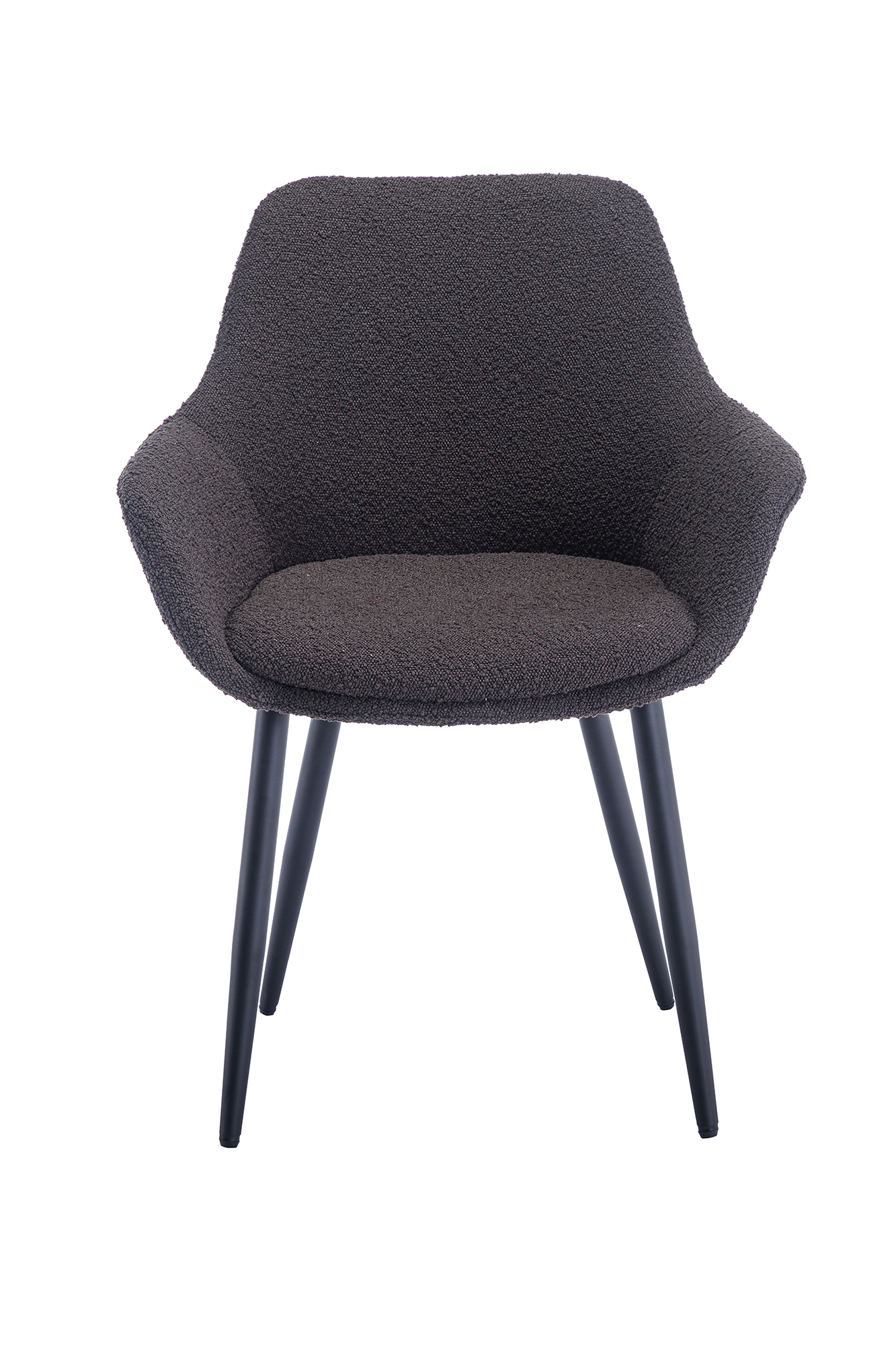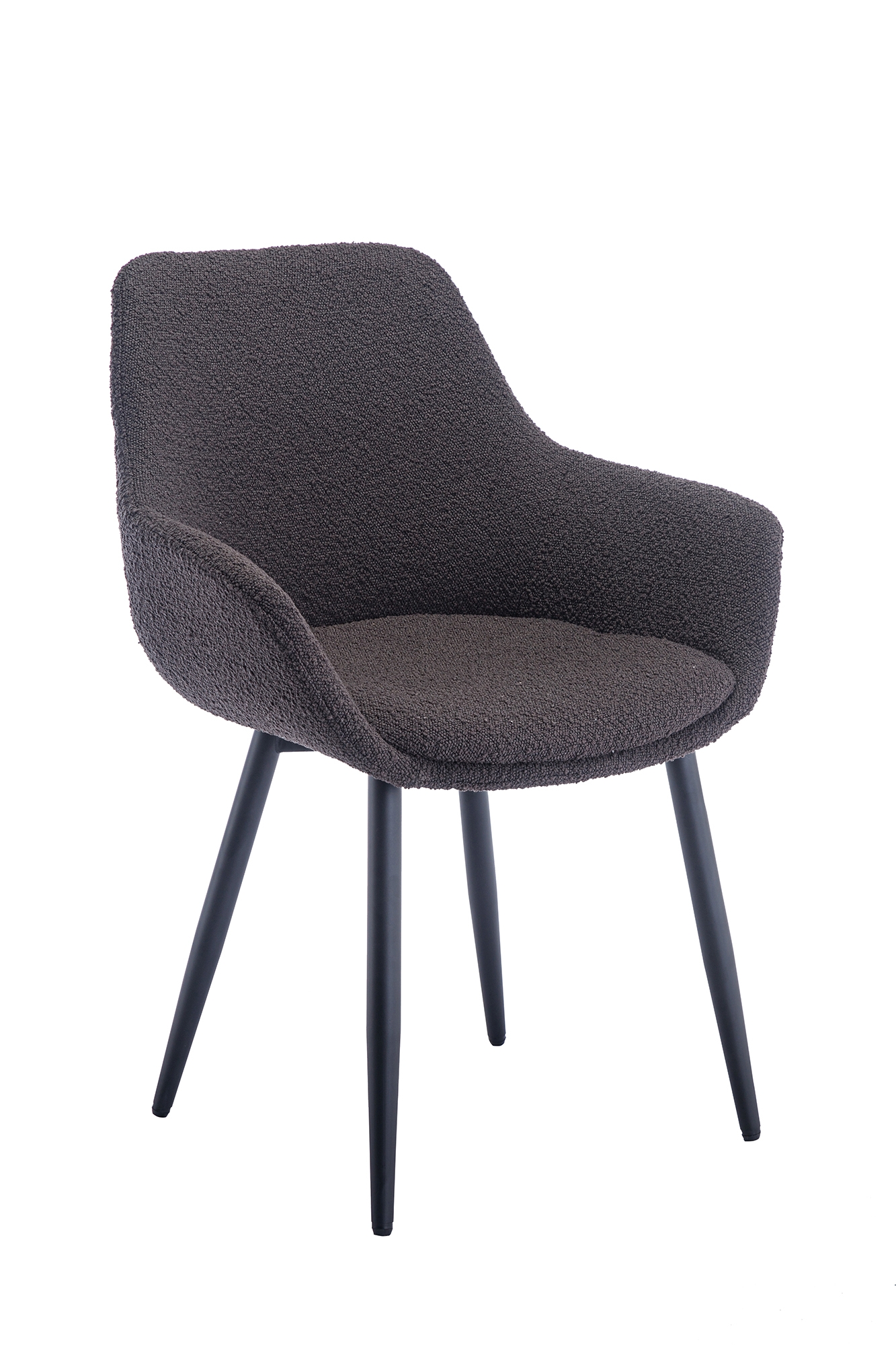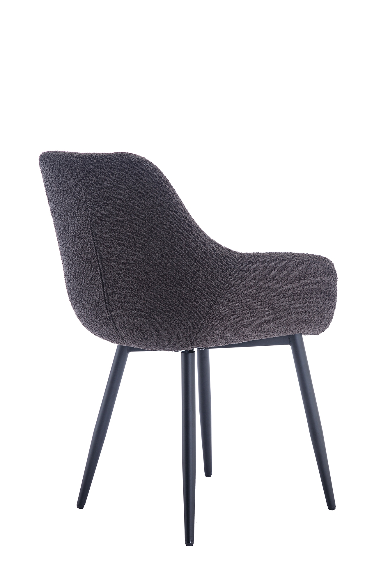 Ce lot de 2 chaises à accoudoirs tendance séduit par son tissu texturé aspect bouclette. Le piètement robuste à 4 pieds en métal finition époxy ton noir mat garantit une excellente stabilité tout en offrant un superbe contraste avec le revêtement de la chaise. Grâce au dossier arrondi et au rembourrage confortable, vous bénéficierez d'un excellent confort d'assise. Les accoudoirs légèrement évasés sont un vrai point fort visuel. Grâce à leur design stylé, les chaises peuvent être placées dans un coin repas, une salle d'attente ou même une salle de réunion. Cette chaise attirera également tous les regards en guise de siège solo. Vos invités et vous-même allez adorer votre nouvelle chaise.
