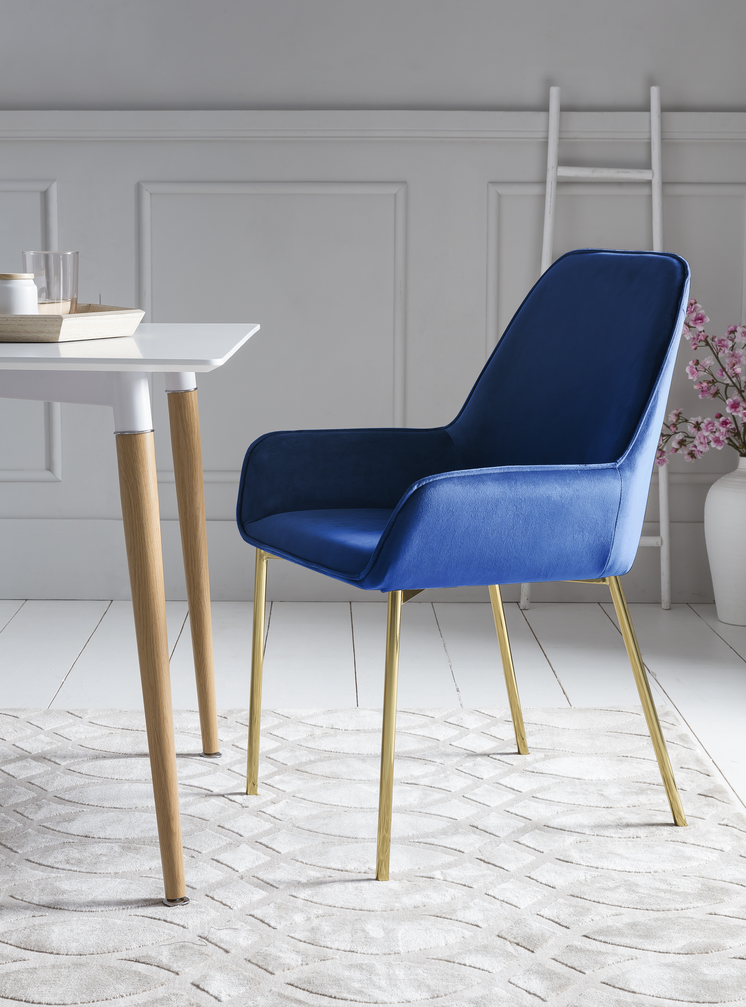 Cette chaise rembourrée tendance séduit par son joli revêtement stylé en tissu aspect velours et par son rembourrage au niveau de l'assise et du dossier. Les 4 pieds légèrement en biais en laiton doré garantissent une excellente stabilité tout en offrant un superbe contraste avec le revêtement de la chaise. Grâce au rembourrage confortable, au dossier et aux accoudoirs, vous bénéficierez d'un confort d'assise haut de gamme.