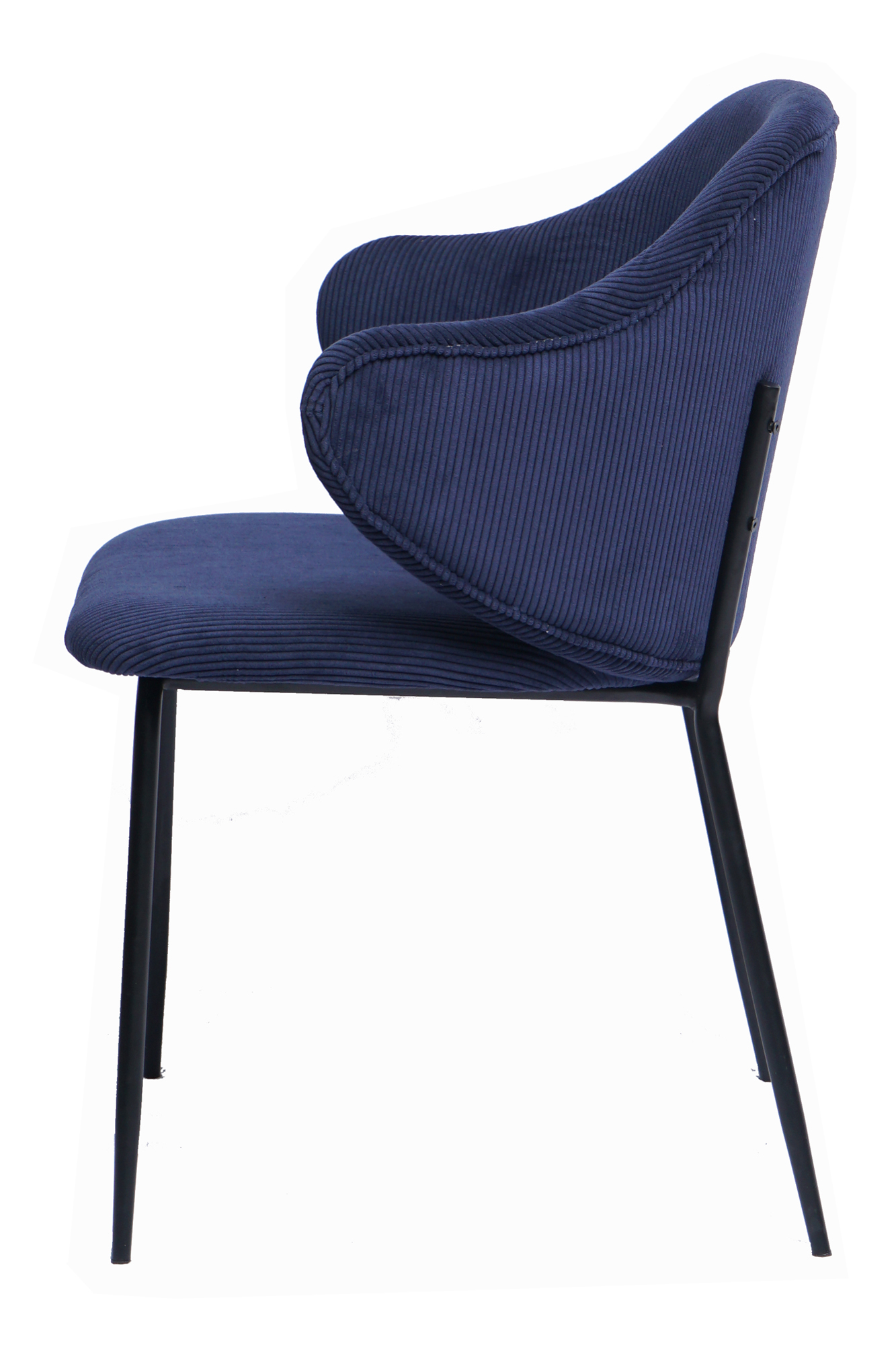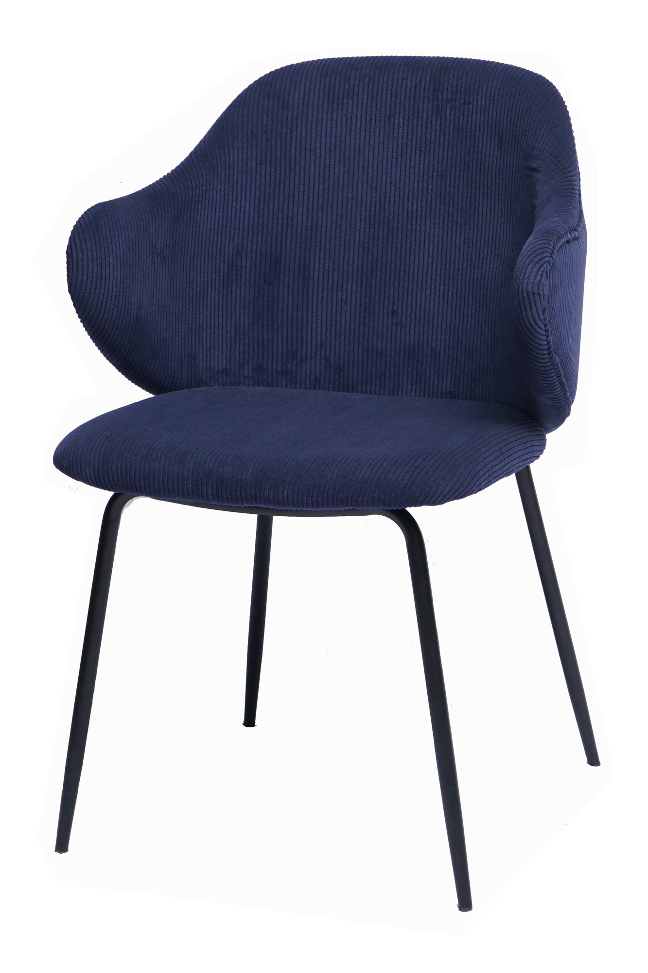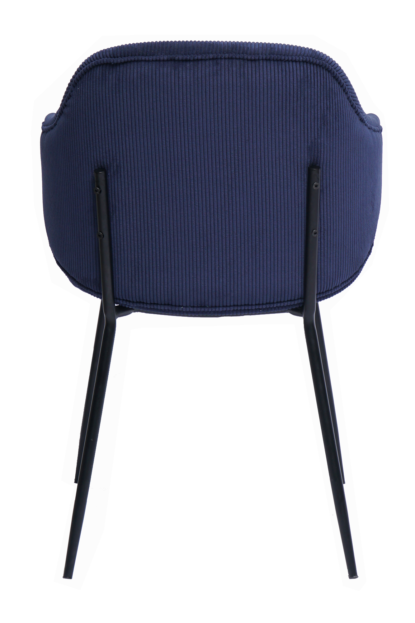 Ce lot de 2 chaises à accoudoirs tendance est proposé dans un tissu texturé ton bleu foncé. Le piètement fin à 4 pieds en métal finition époxy ton noir mat garantit une excellente stabilité tout en offrant un superbe contraste avec le revêtement de la chaise. Grâce au dossier arrondi et au rembourrage confortable, vous bénéficierez d'un excellent confort d'assise. Les accoudoirs légèrement évasés sont un vrai point fort visuel. Grâce à leur design stylé, les chaises peuvent être placées dans un coin repas, une salle d'attente ou même une salle de réunion. Ce meuble attirera également tous les regards en guise de chaise solo. Vous et vos invités allez adorer votre nouveau siège.