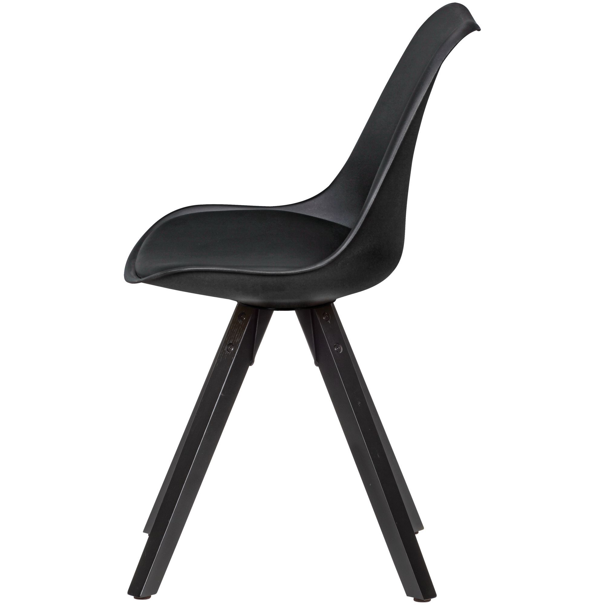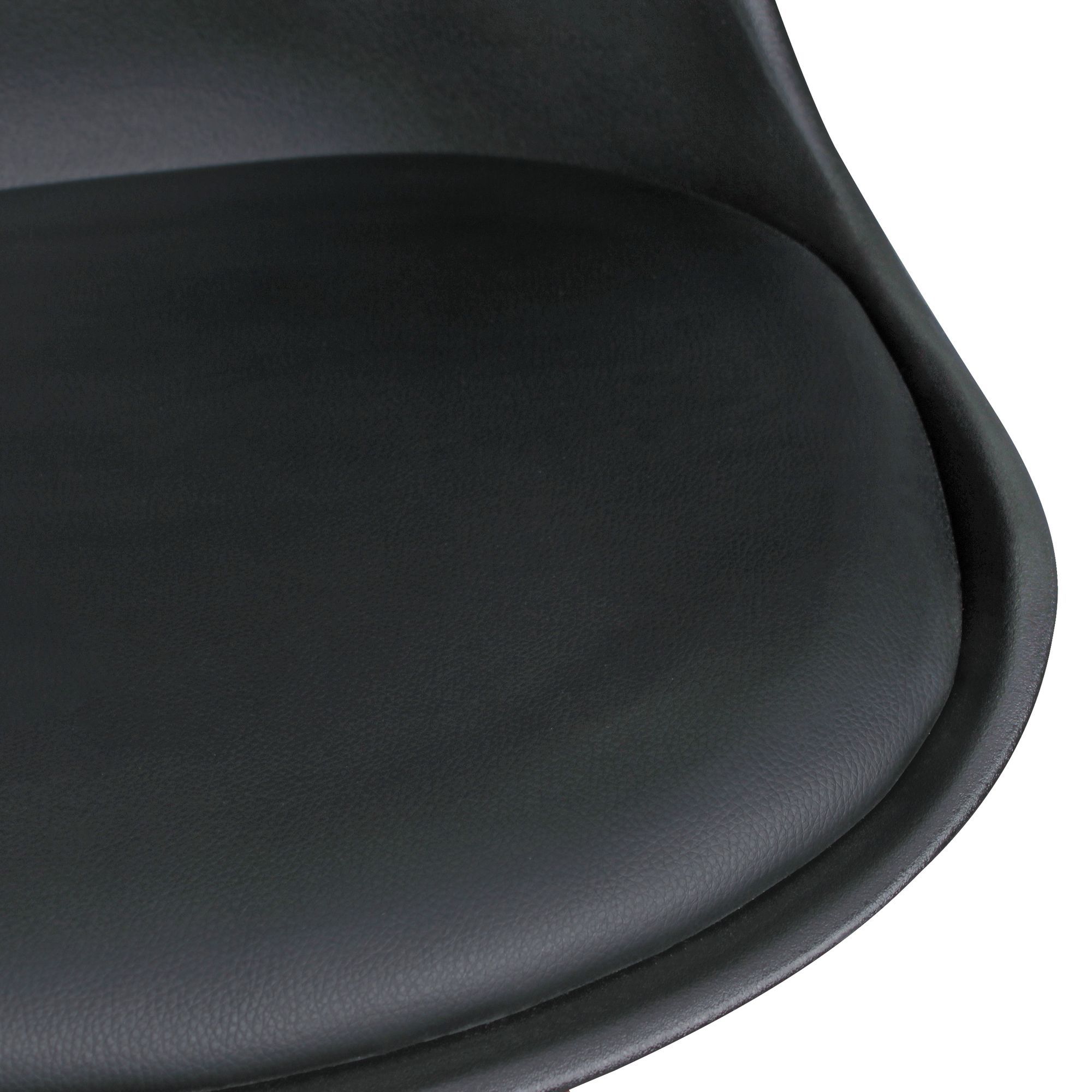 - MATÉRIAUX ✔ La coque du siège est en plastique et les pieds sont en bois d’hévéa massif laqué ton noir. Le revêtement du siège est en similicuir résistant. De plus, chaque pied en bois est équipé d’un patin en feutre pour éviter les grincements ou les rayures sur le sol.