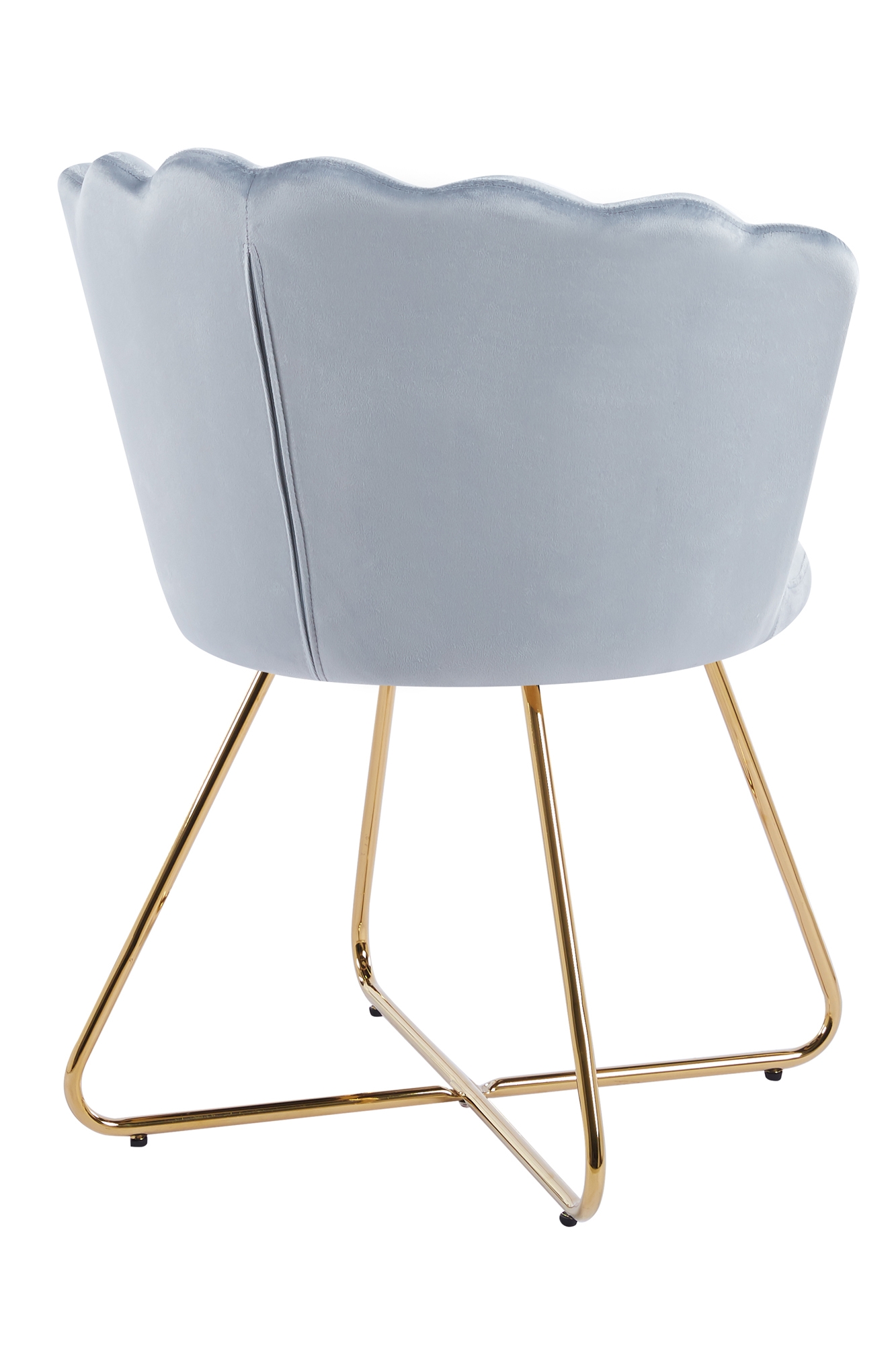 Fuyez le quotidien et profitez d'une petite pause. Ce lot de chaises tendance dans un design coquillage séduit par son revêtement en velours et par son assise et son dossier arrondis. Le piètement au design croisé en métal doré garantit une excellente stabilité tout en offrant un superbe contraste avec le revêtement de la chaise. Grâce au rembourrage de l'assise et du dossier et à la forme stylée de ce fauteuil, vous profiterez d'un confort d'assise exceptionnel. Sa forme arrondie lui donne un look tout en douceur. La chaise peut être positionnée dans le séjour en guise de chaise de salle à manger ou servir de siège, par exemple, pour compléter une coiffeuse. Peu importe où vous la placerez, cette chaise coquillage attirera tous les regards dans votre intérieur.