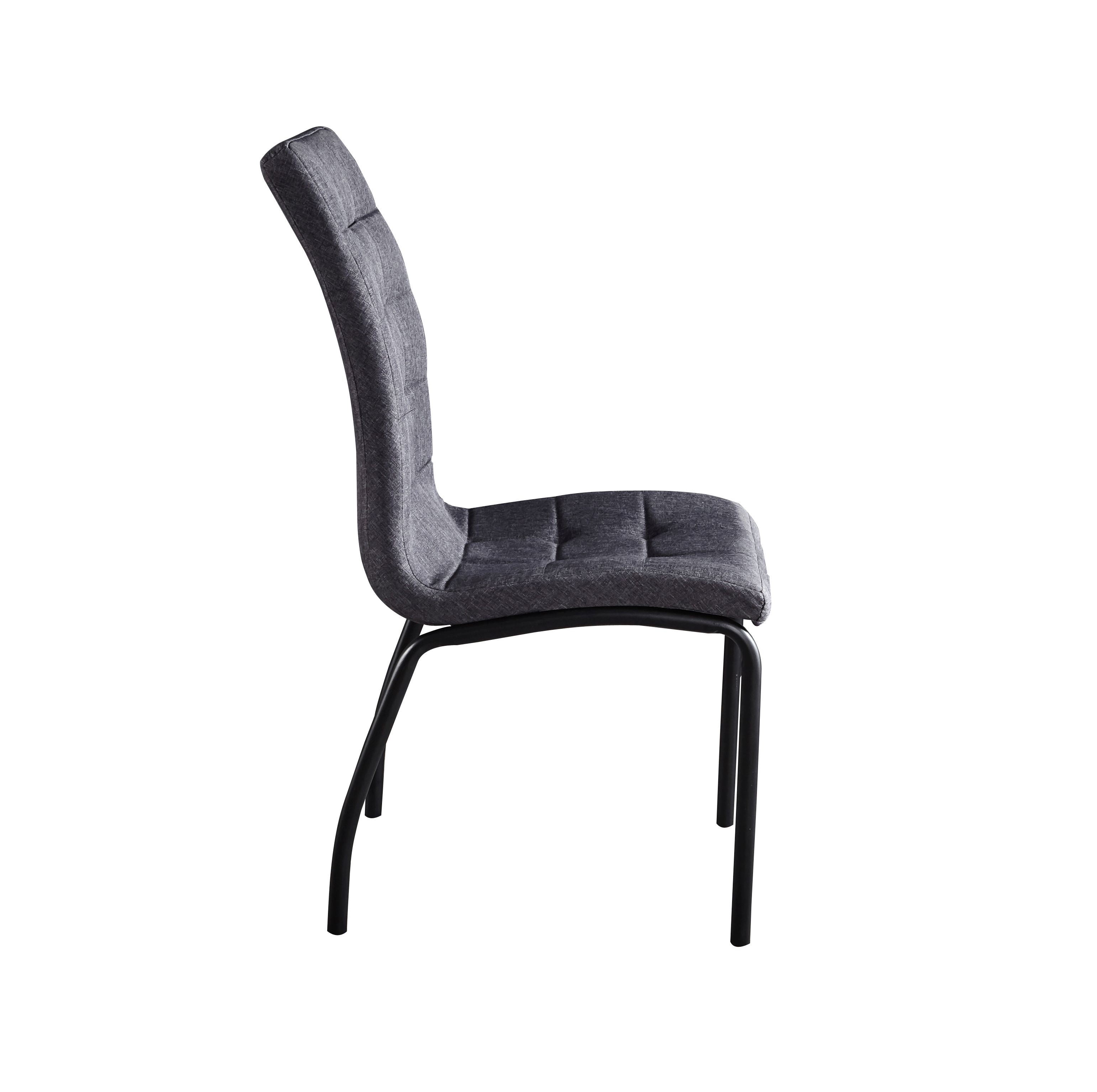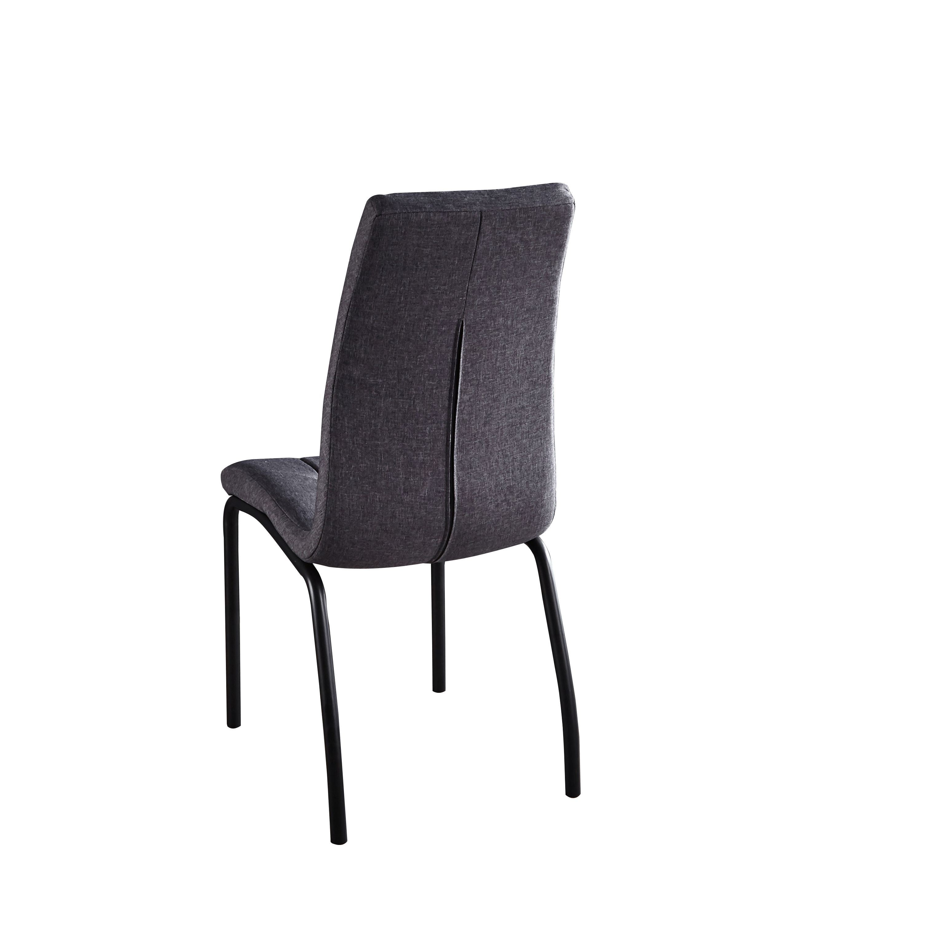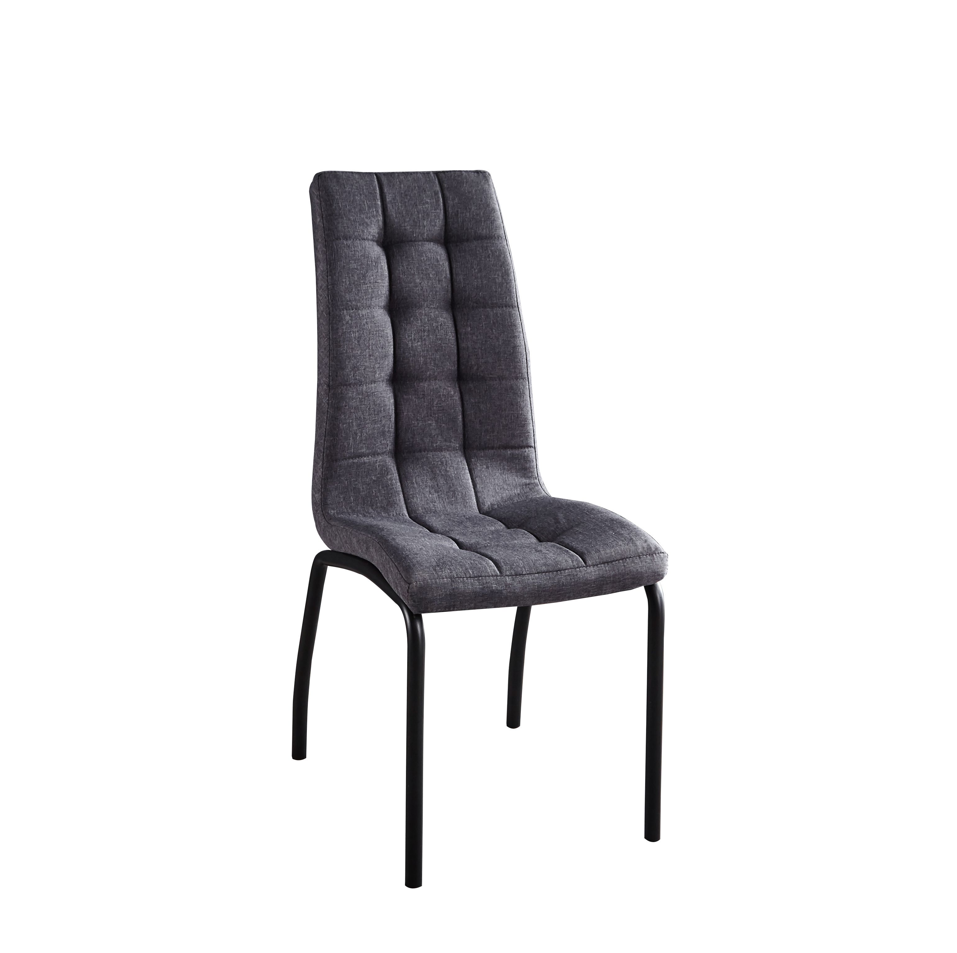 La chaise de salle à manger moderne rend le coin repas encore plus accueillant. Un tissu de qualité a été utilisé pour le revêtement. Grâce au garnissage confortable et au dossier haut, rester en position assise pendant longtemps ne pose aucun problème. Le piètement en acier n'offre pas seulement stabilité et sécurité : il s'harmonise également parfaitement avec le revêtement en tissu. Le capitonnage dans l'assise et le dossier attirera tous les regards. Pour prendre le repas du soir en famille, le café avec une amie ou pour le télétravail, vous allez adorer votre nouveau siège. Vous pouvez également détourner cette chaise de son utilisation initiale et la positionner dans une autre pièce : elle sera également du plus bel effet.