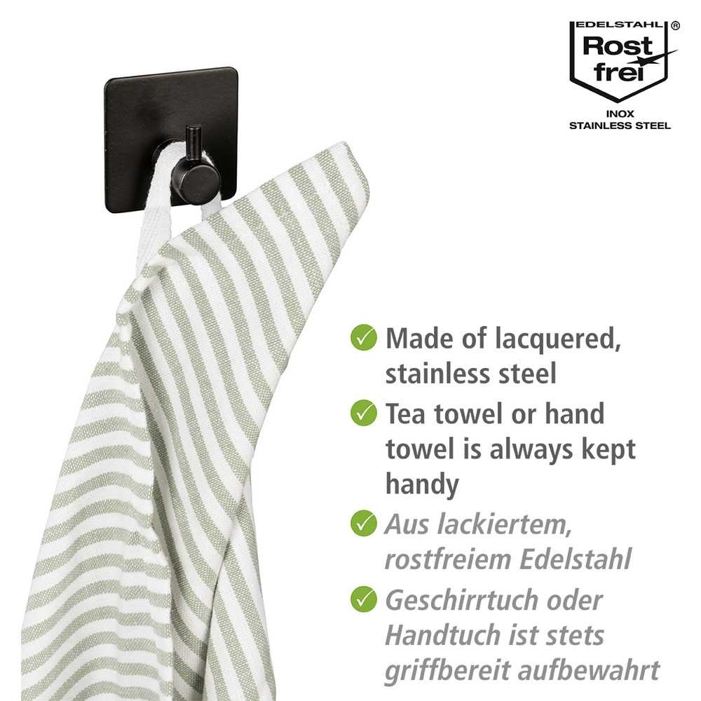 Crochets de qualité supérieure : les crochets séduisent par leur forme carrée moderne et sont fabriqués en acier inoxydable, recouverts d'une peinture noire mate. Ils apporteront ainsi une touche originale à votre intérieur. Cet accessoire pratique convient aussi parfaitement à l'extérieur, car les crochets ultra chics peuvent être fixés au barbecue à l'aide du ruban adhésif fourni.