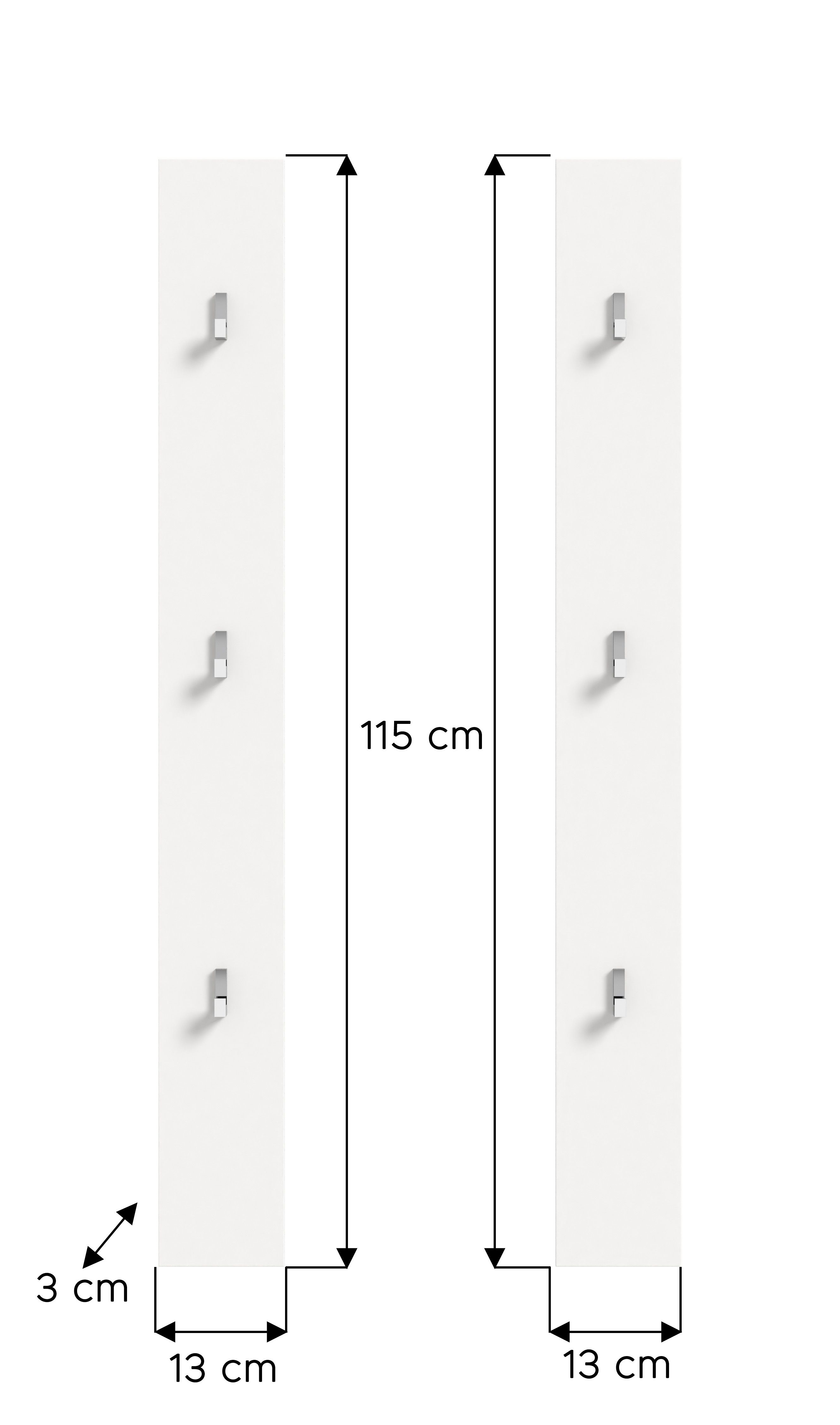 Optimisez votre entrée avec notre lot de 2 panneaux muraux stylés ton blanc ultra brillant (L/H/P : 13x115x3 cm). Chaque panneau est équipé de trois crochets argentés élégants, parfaits pour suspendre vestes, sacs ou écharpes. Avec son design moderne et sa surface lisse dans une finition ultra brillante, cet ensemble apportera une touche fraîche et contemporaine à votre intérieur. Grâce à leur format étroit, ces panneaux sont la solution idéale pour les petits espaces ou les couloirs où chaque centimètre compte. Vous pouvez les utiliser seuls ou les combiner pour créer une ambiance accueillante et bien organisée. Fabriqués à partir de matériaux de qualité, ils sont à la fois durables et faciles d’entretien, pour un usage quotidien en toute sérénité. Le montage simple permet une installation rapide et sans effort. Alliez fonctionnalité et esthétique avec cet ensemble pratique de panneaux muraux, parfait pour celles et ceux qui recherchent un intérieur soigné et moderne. Apportez une touche personnelle à votre logement tout en utilisant efficacement l’espace disponible !