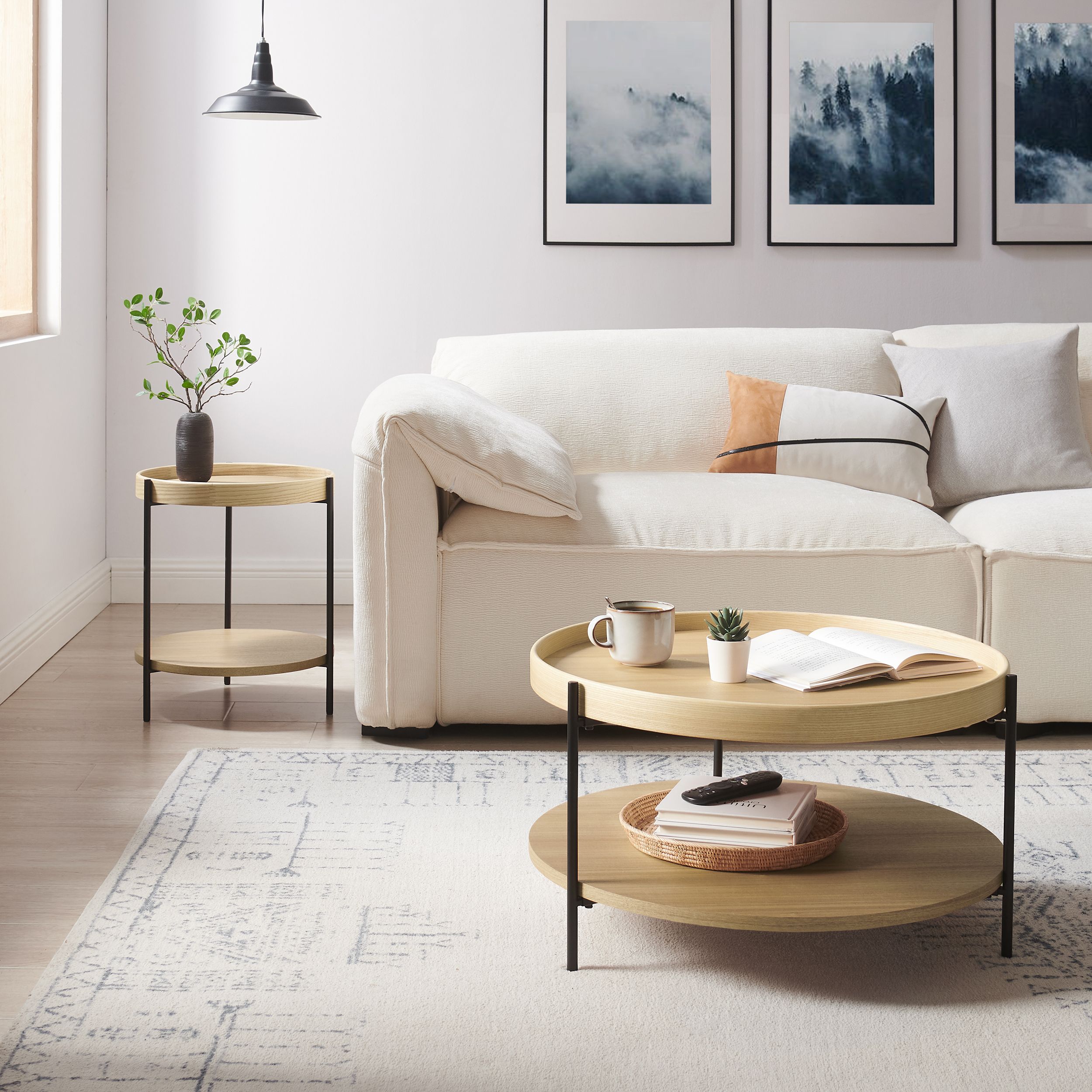 2 tables basses de tailles différentes avec 1 tablette chacune sous le plateau de table