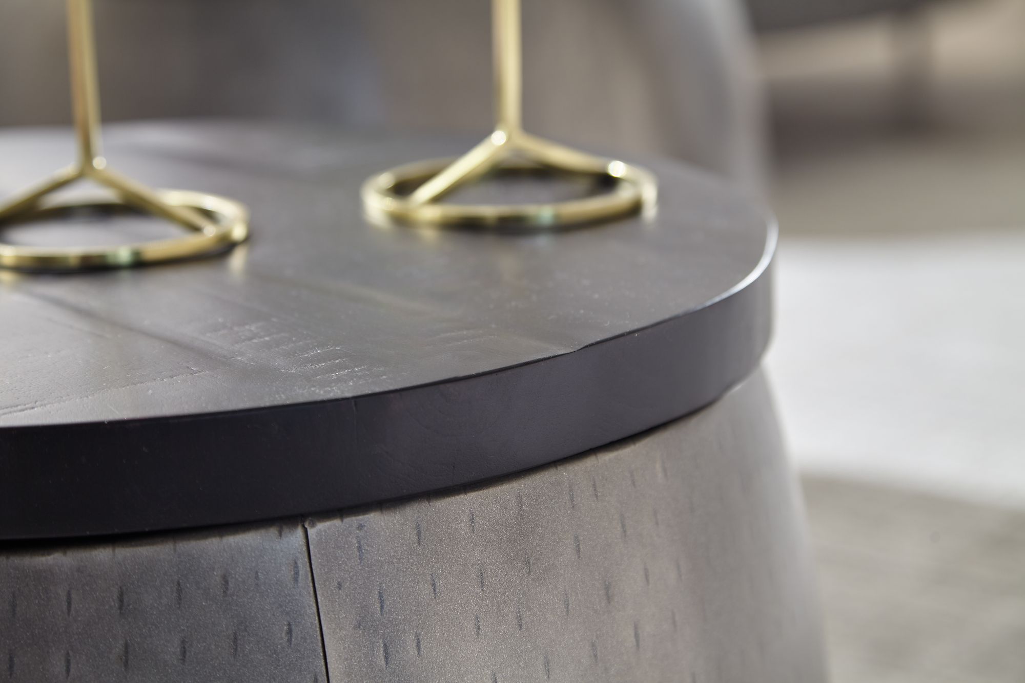 COMPOSITION ✔ Les plateaux sont en bois de manguier massif laqué ton noir recouvert d'une couche supplémentaire de vernis transparent. Les caissons sont fabriqués en fer laqué.