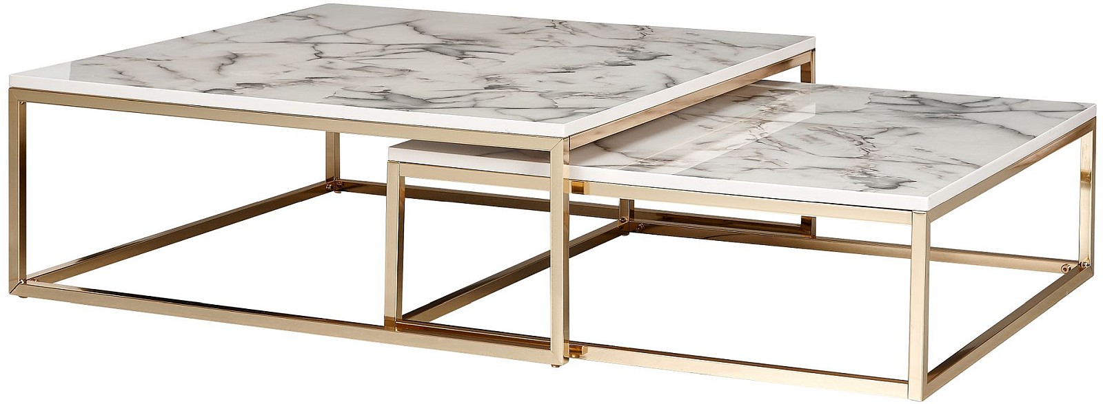 INSTANTS PASSIONNANTS ✔ Avec son charme particulier, ce lot de 2 tables gigognes insufflera à votre salon une touche de glamour. Les piètements élégants et les plateaux de table aspect marbre vous séduiront. Un ensemble de tables basses dans un design inimitable !