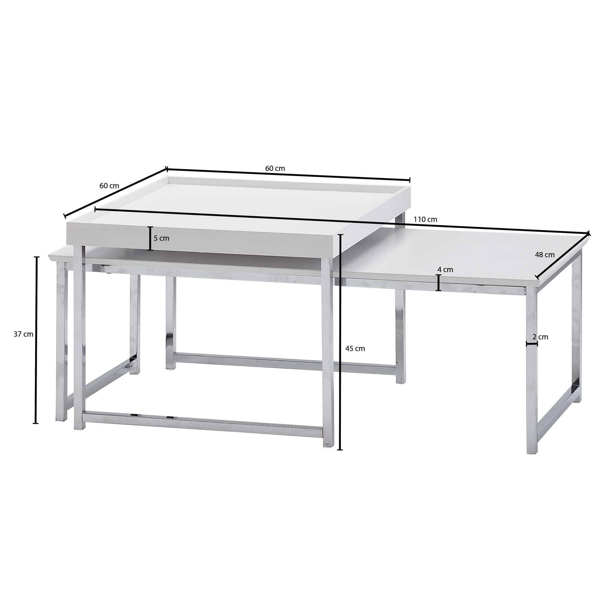 DIMENSIONS ✔ Table rectangulaire (LxPxH) : 110 x 48 x 37 cm // Table carrée (LxHxP) : 60 x 45 x 39 cm // Épaisseur plateau : 2 cm // Vous trouverez d'autres dimensions sur l'image correspondante