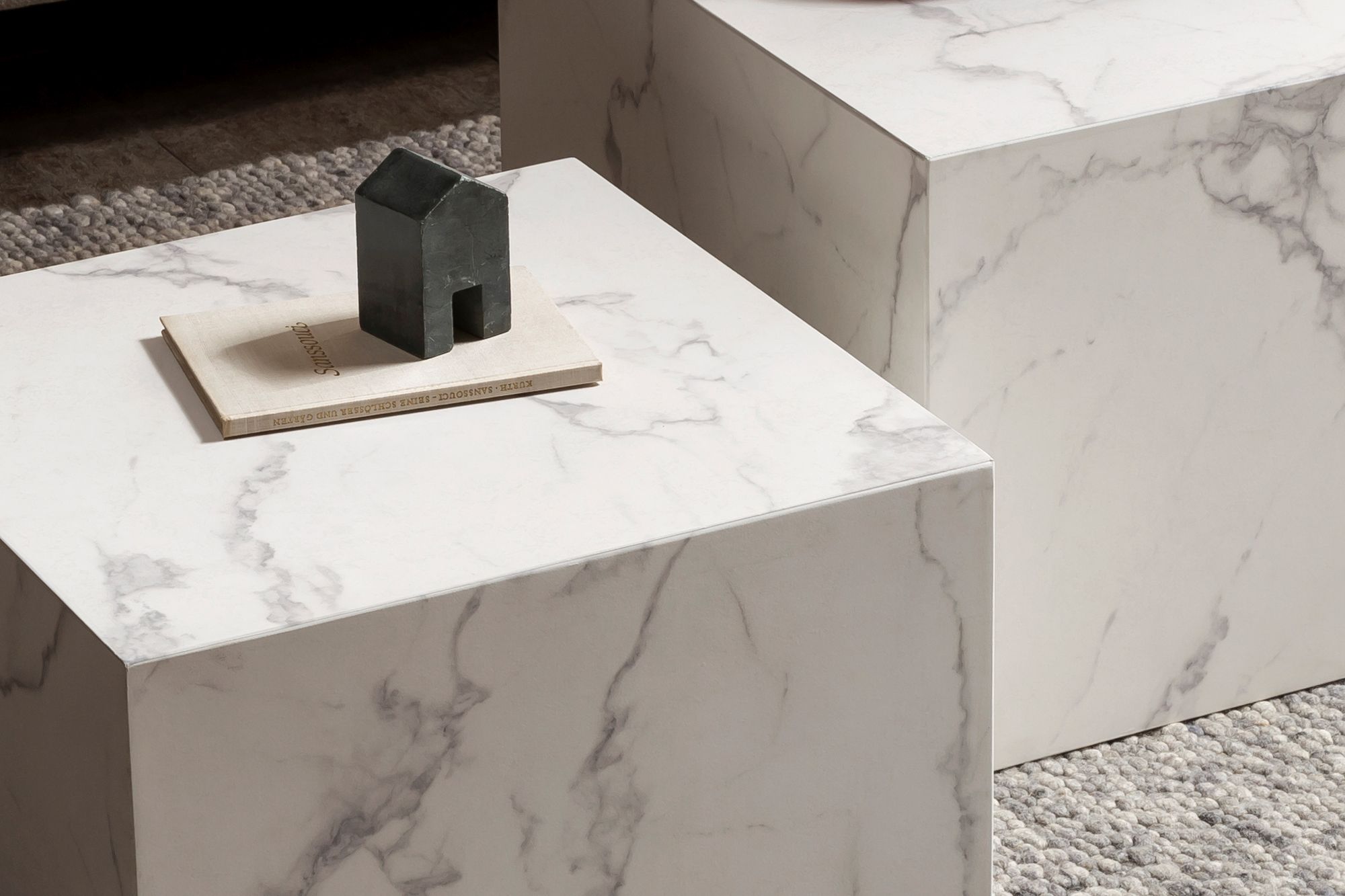 Ces tables basses chics en deux tailles confèreront instantanément un aspect élégant à votre salon. La forme simple en cube avec une grande surface de rangement met particulièrement en valeur le superbe aspect marbré. La faible hauteur donnera un côté lounge à votre intérieur.