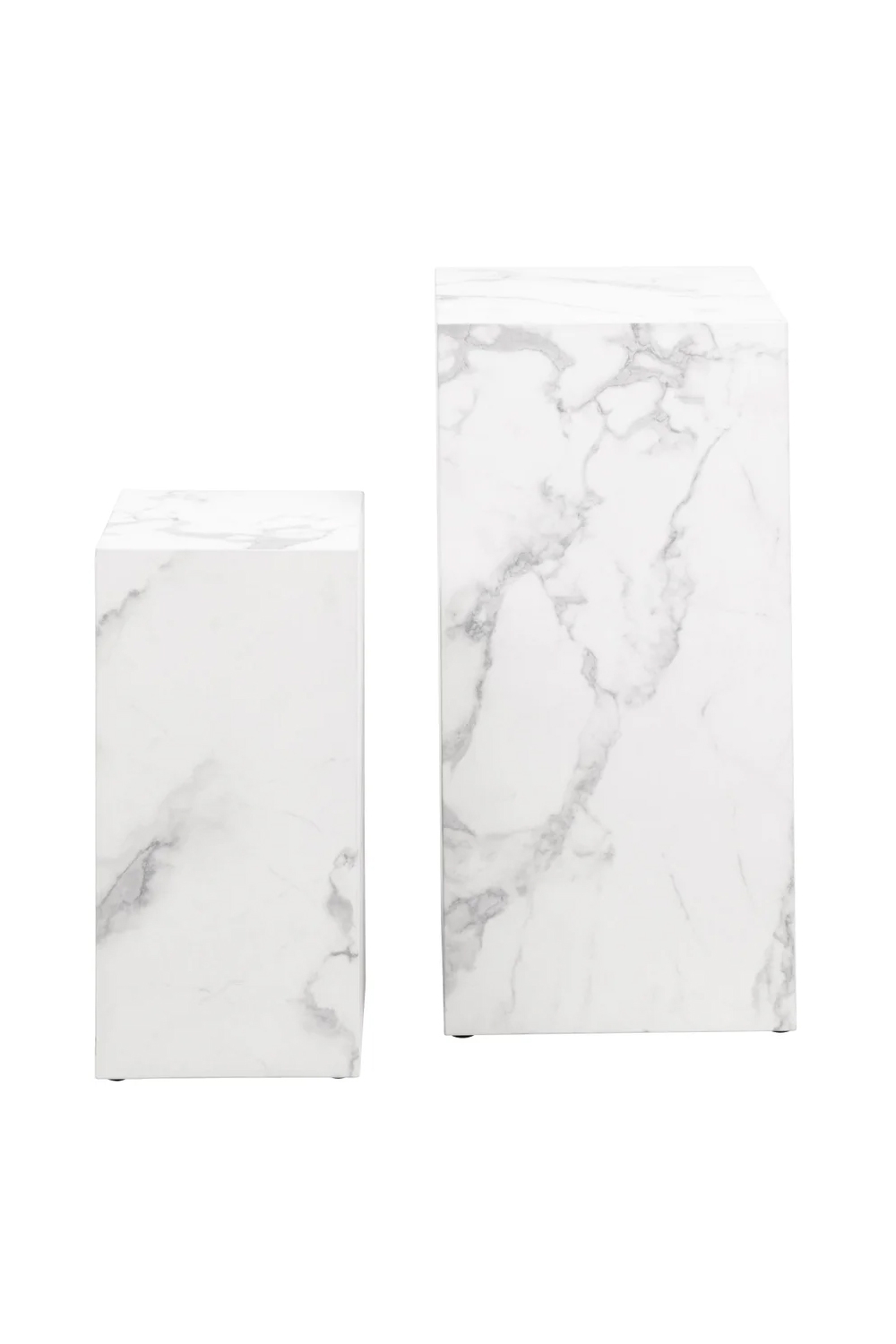 Ce lot de tables d'appoint ultra chic confèrera instantanément un aspect élégant à votre salon. La forme simple en cube avec une grande surface de rangement met particulièrement en valeur le superbe aspect marbre blanc. La table d'appoint peut être utilisée de différentes manières : à côté du canapé, comme table de chevet ou comme décoration à disposer librement dans la pièce. Grâce aux différentes hauteurs, il est possible de placer les tables côte à côte ou de les positionner séparément à différents endroits du salon selon les besoins. Elles peuvent aussi servir de sellettes pour poser les fleurs ou les accessoires ; assurément, cet ensemble décoratif attirera tous les regards dans votre intérieur.