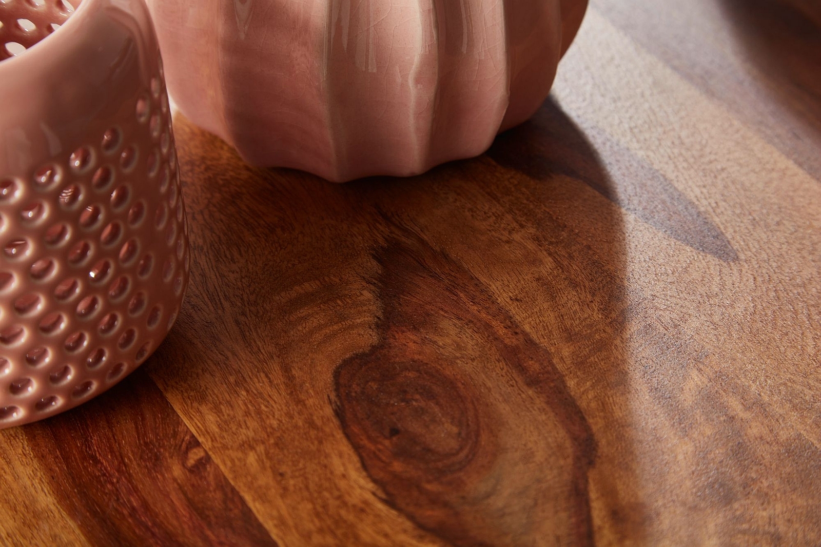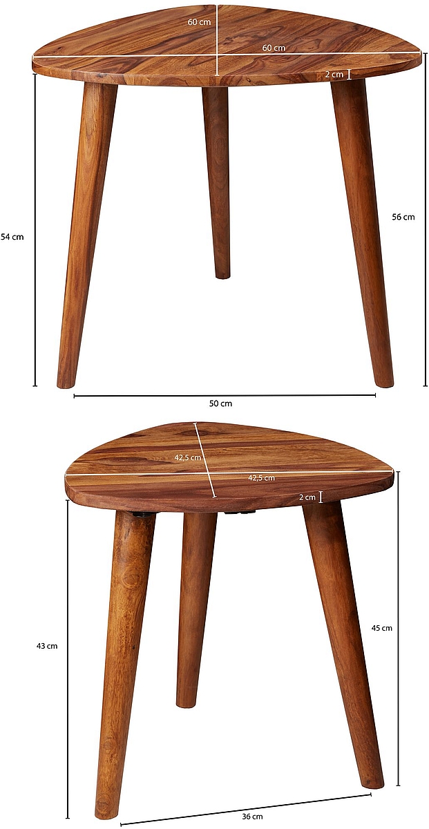 - COMPOSITION ✔ Pour les deux tables : bois de sheesham massif certifié FSC® avec couche de vernis transparent.