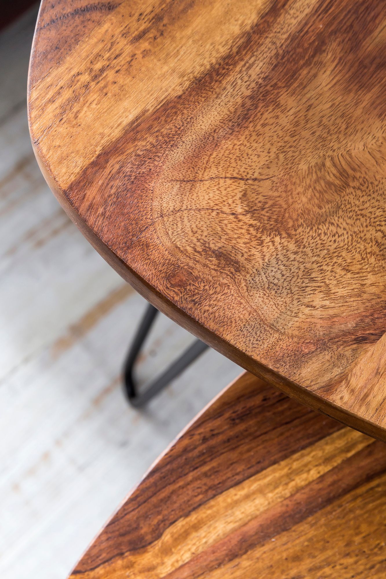 - COOL, MODERNE, MASSIF ✔ Lot de tables de designer lounge en bois de rose d'Inde dans un style industriel original pour les amoureux de décoration intérieure personnalisée. Une attention particulière est portée au design laissé à l'état naturel et au veinage original du bois véritable de cette pièce unique. Les petites tables en bois massif sont portées par des piètements métalliques stables. Dans le salon à côté du canapé ou dans l'entrée en guise de tables décoratives : ce lot s'adapte simplement à votre style.
