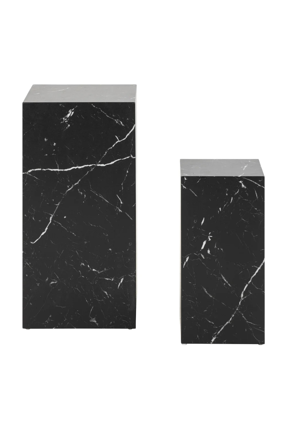 Ce lot de tables d'appoint ultra chic confèrera instantanément un aspect élégant à votre salon. La forme simple en cube avec une grande surface de rangement met particulièrement en valeur le superbe aspect marbre noir. La table d'appoint peut être utilisée de différentes manières : à côté du canapé, comme table de chevet ou comme décoration à disposer librement dans la pièce. Grâce aux différentes hauteurs, il est possible de placer les tables côte à côte ou de les positionner séparément à différents endroits du salon selon les besoins. Elles peuvent aussi servir de sellettes pour poser les fleurs ou les accessoires ; assurément, cet ensemble décoratif attirera tous les regards dans votre intérieur.