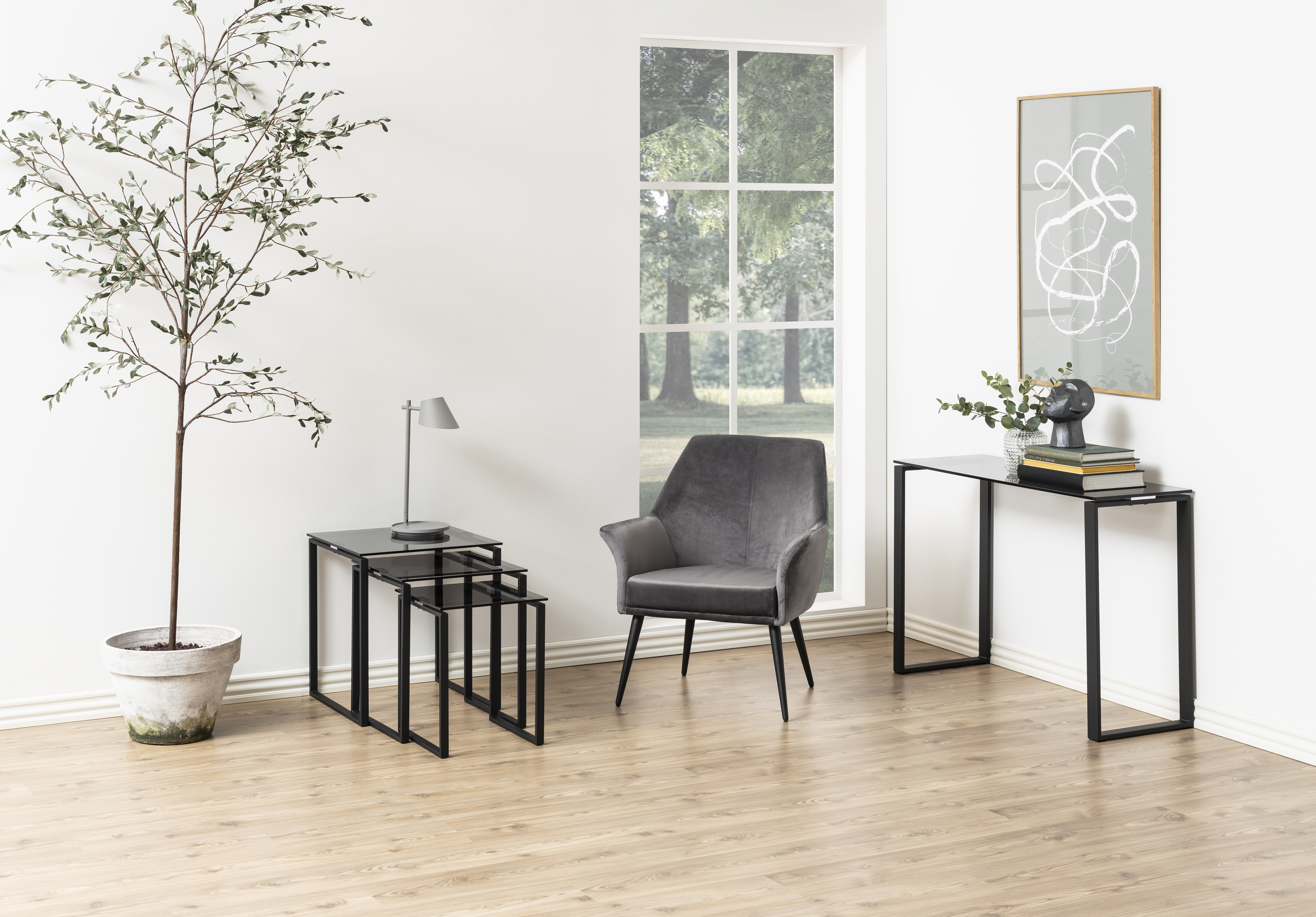 Piètement : métal finition époxy aspect rugueux ton noir mat