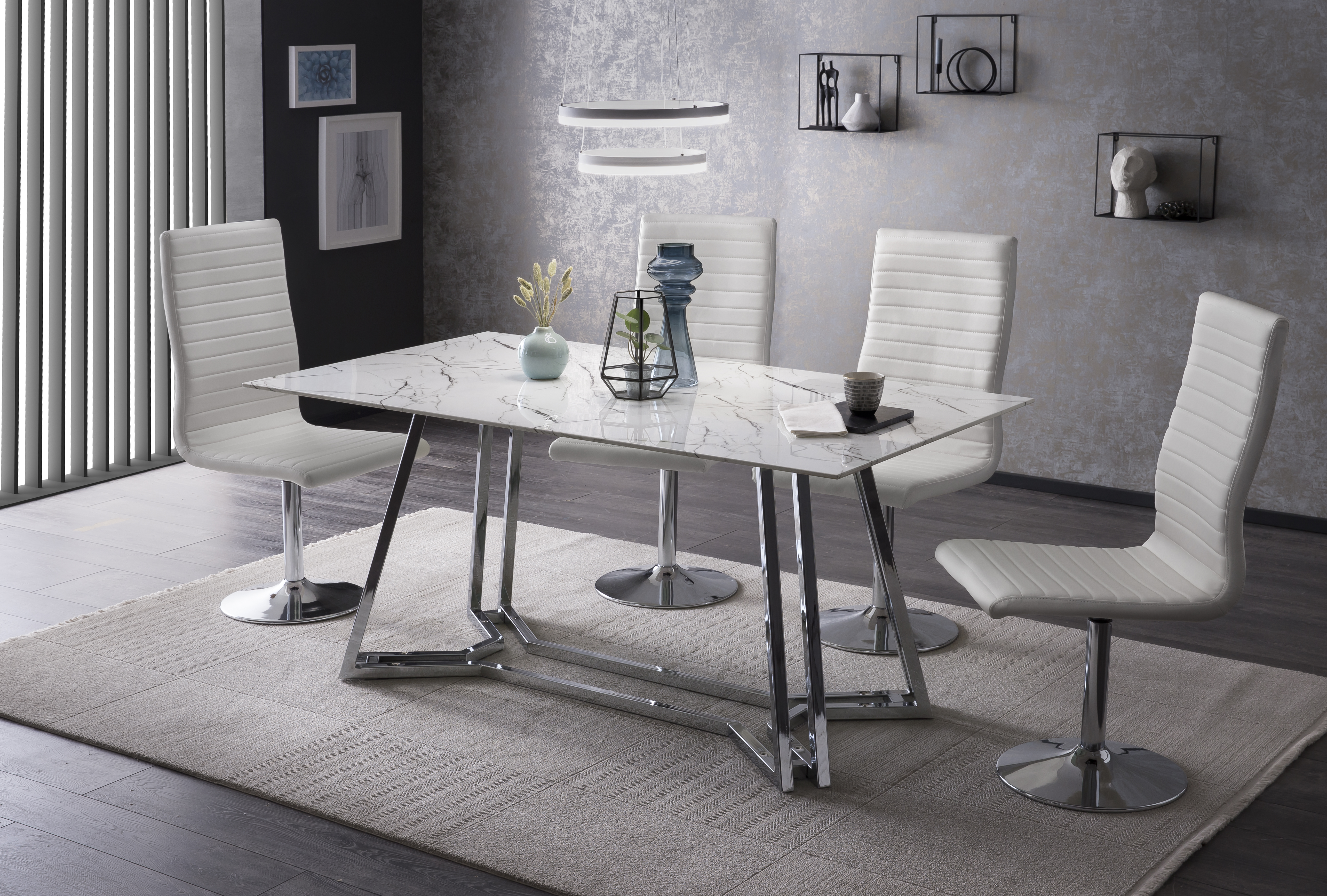 Un design épuré, des formes sobres et un revêtement de style classique. Ce lot de 4 chaises de salle à manger séduit par ses surpiqûres au niveau de l’assise et du dossier et son revêtement attrayant en cuir synthétique. Le pied tulipe en métal chromé garantit une stabilité et une sécurité optimales tout en s’harmonisant parfaitement avec le revêtement en cuir synthétique de la chaise. Le siège offre un confort d’assise exceptionnel grâce à son assise large qui pivote à 360 degrés et à son dossier haut. Grâce à son design intemporel, cette chaise peut également être utilisée comme chaise de conférence, de maquillage ou chaise de bureau.