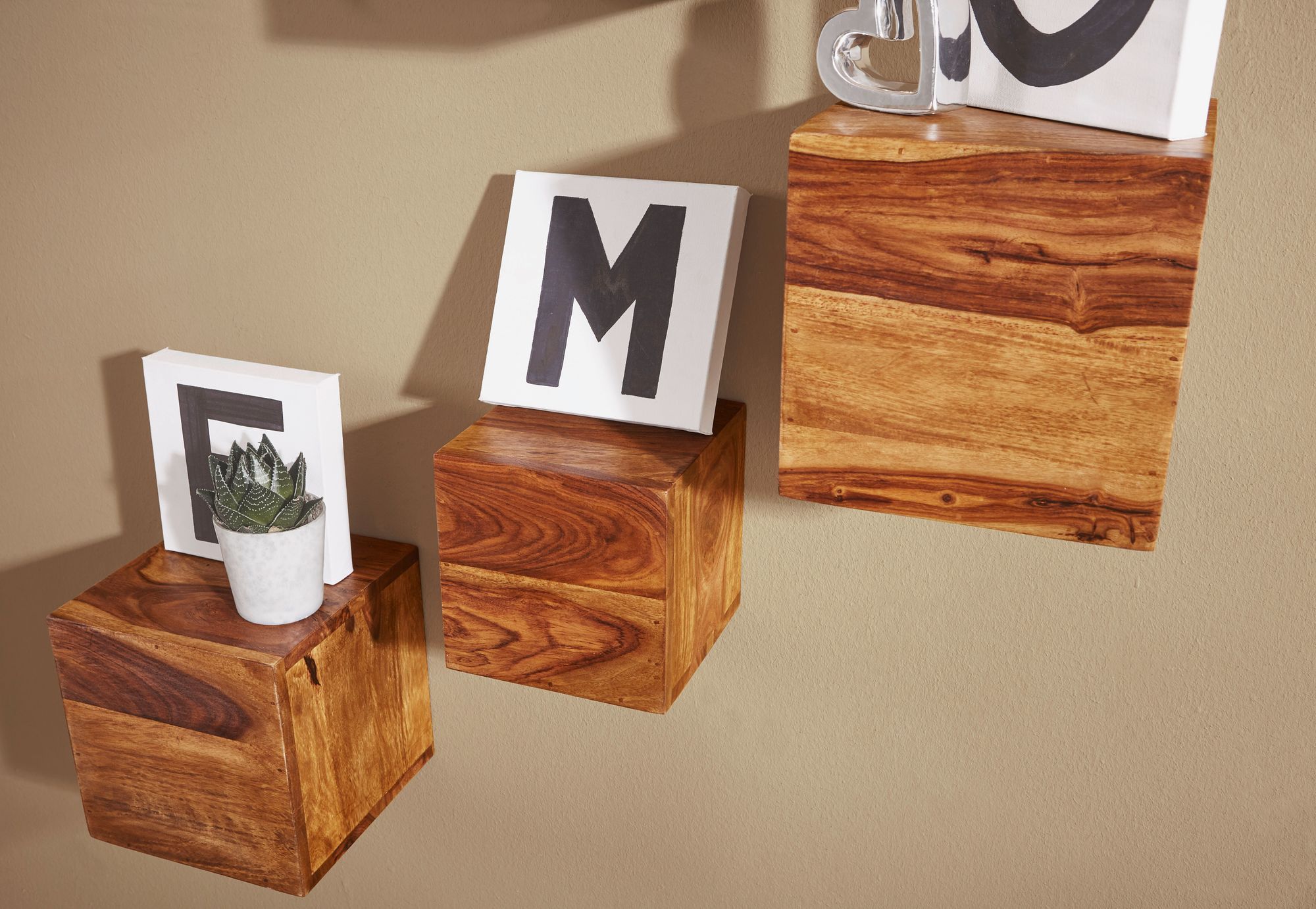 - Lot d'étagères murales tendance en bois massif