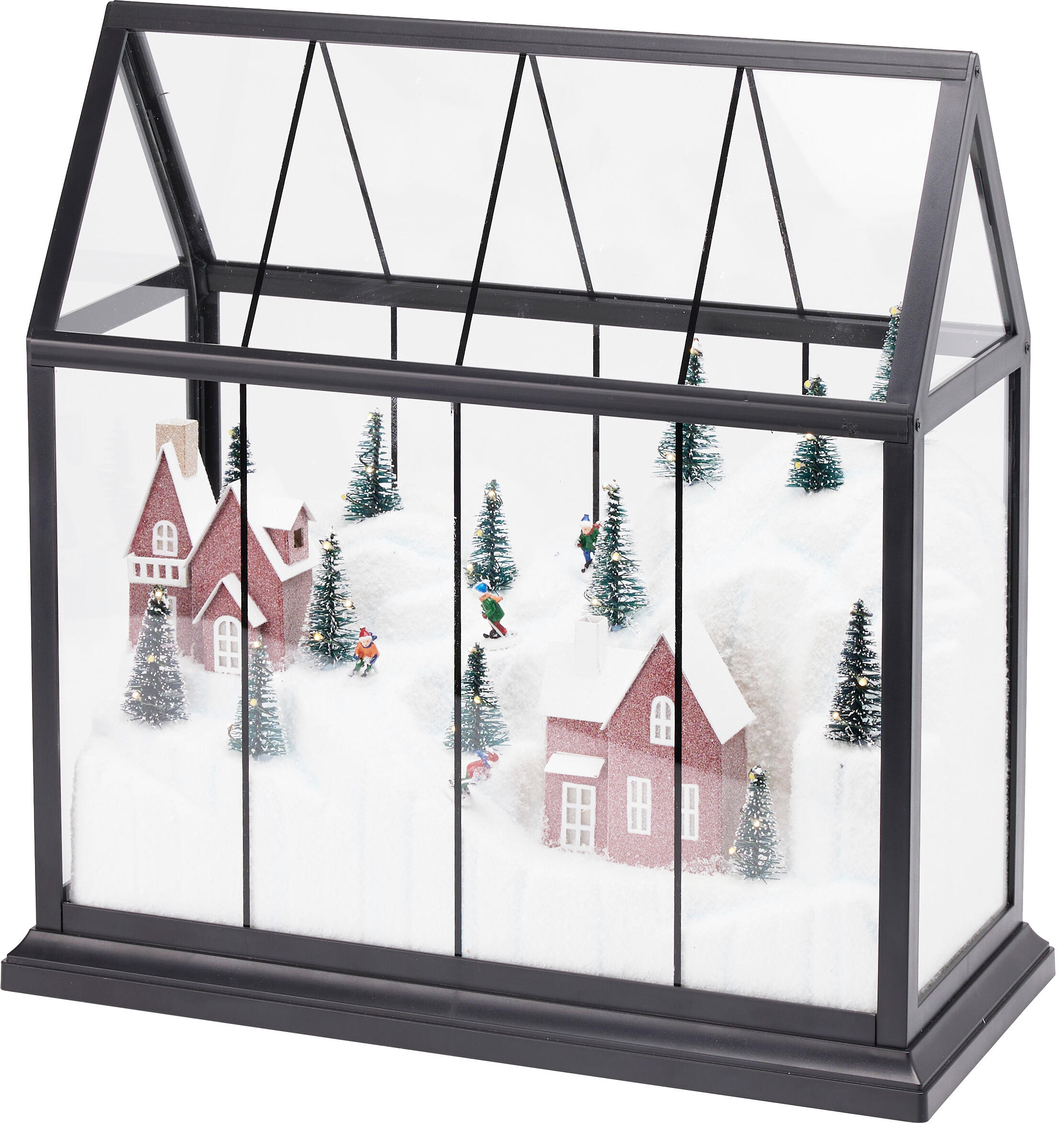 Maison de verre avec paysage hivernal et LED CHRISTMAS