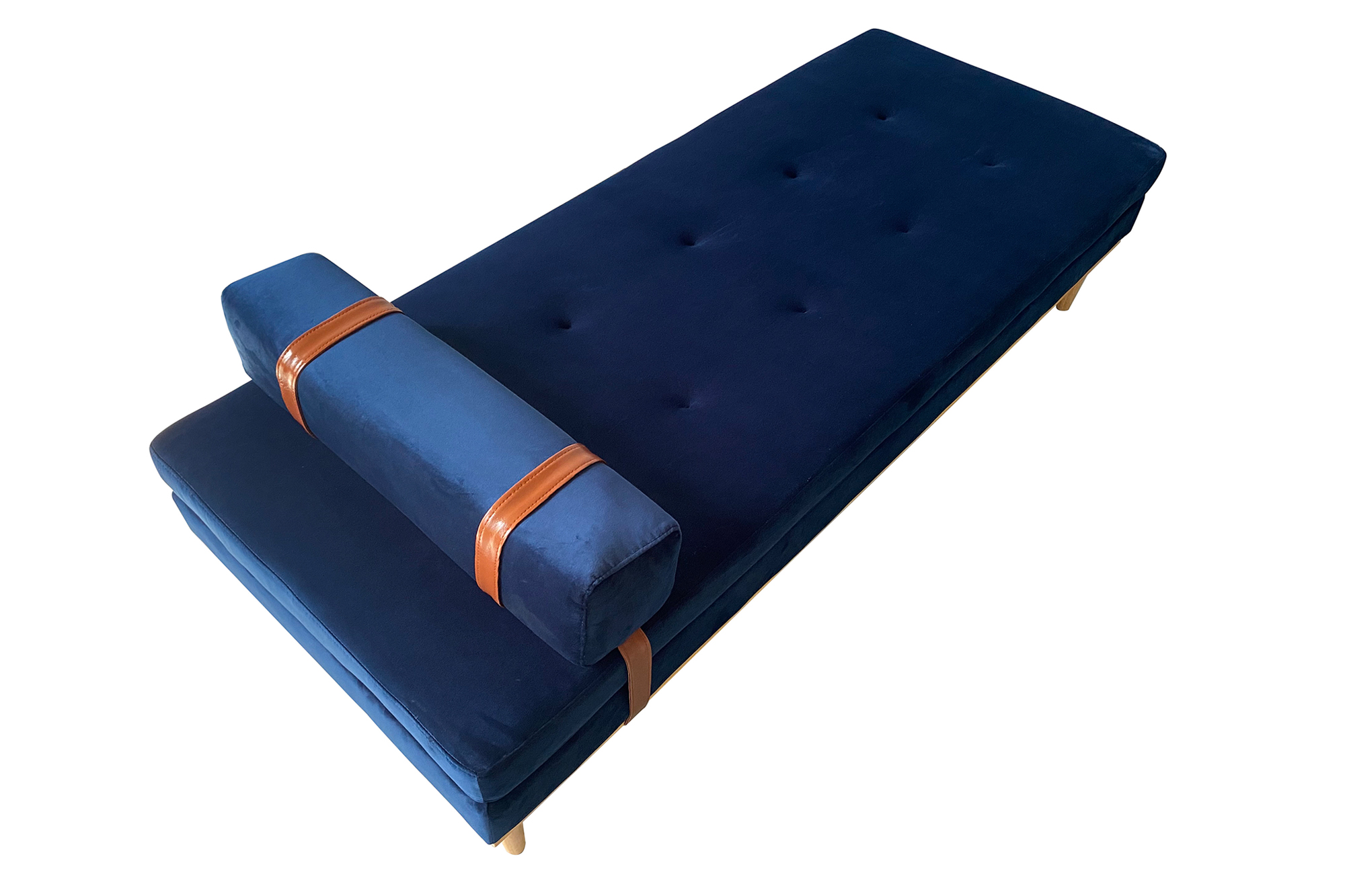 Ce lit de jour est habillé d’un élégant tissu velours bleu. Le cadre et les pieds sont en bois naturel avec une finition laquée aspect clair ; ceci garantit une bonne stabilité et offre un superbe contraste avec le revêtement en tissu. Grâce au rembourrage de la méridienne, vous bénéficiez d'un confort de couchage haut de gamme. L’appuie-tête/cale-nuque est particulièrement remarquable. Vous serez ainsi dans une position confortable pour dormir ou vous reposer. Ce petit bijou en matière de design deviendra rapidement un élément phare de votre intérieur ainsi que votre nouvel espace de bien-être pour profiter de vos heures de détente.