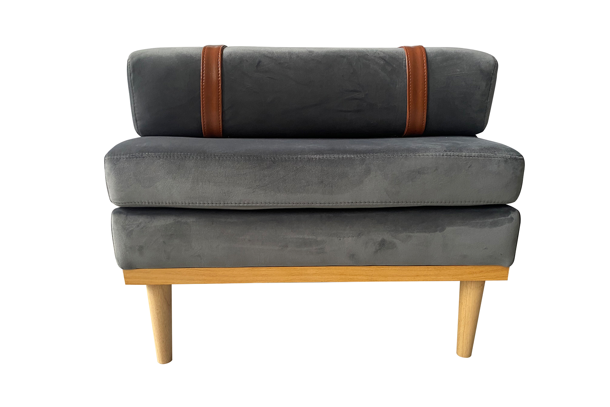 - Tissu velours résistant avec contrastes en cuir synthétique