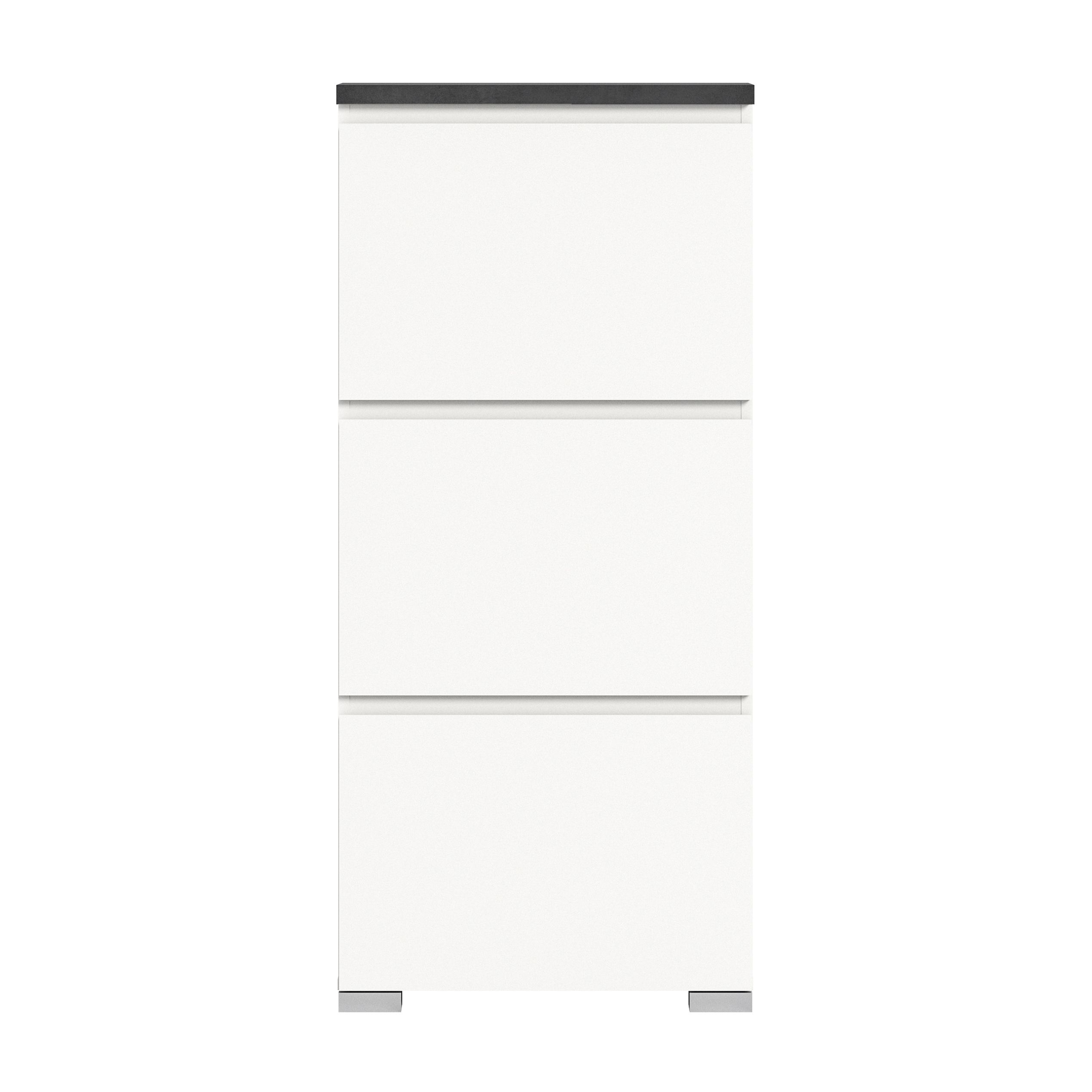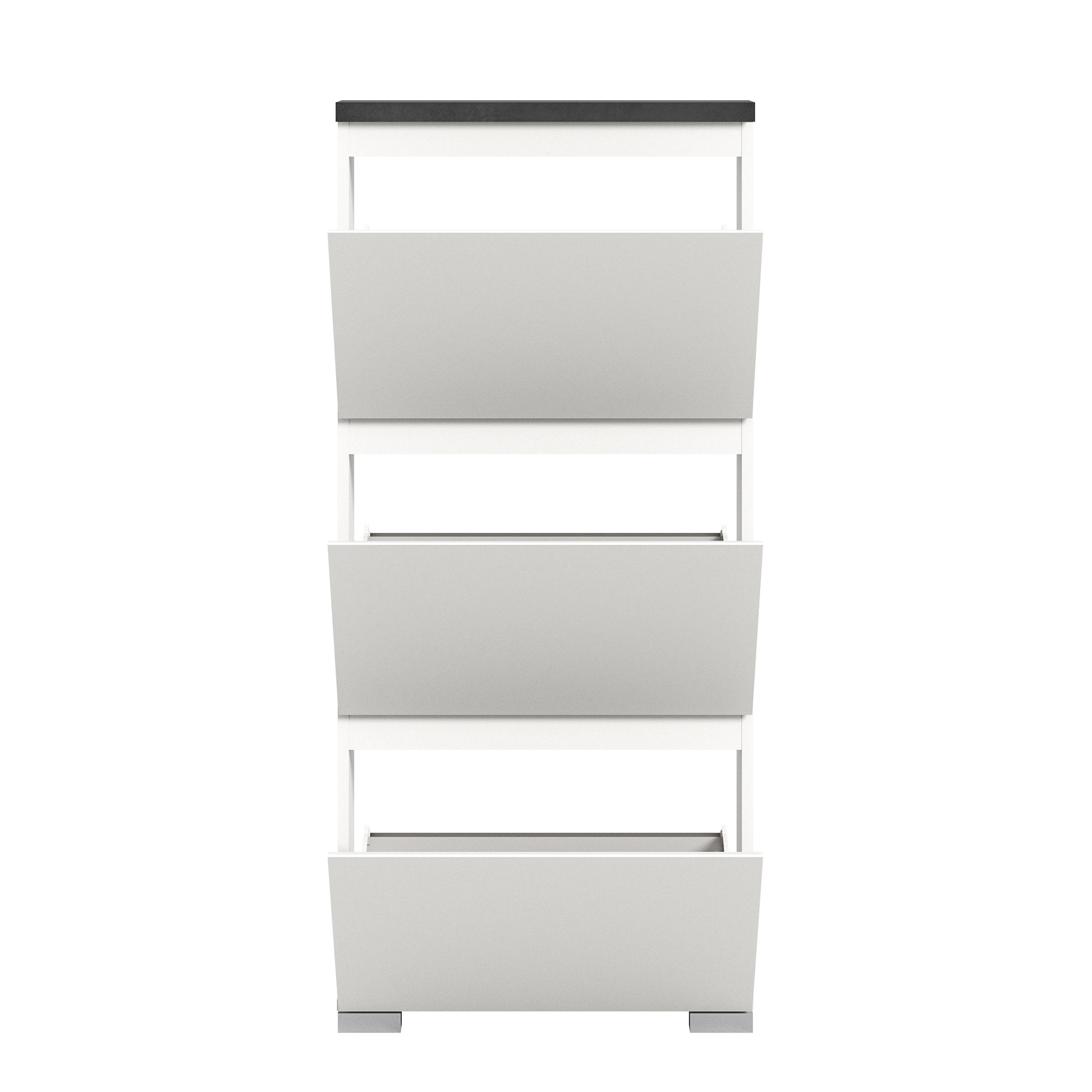 Avec notre série HADERO, découvrez ce meuble à chaussures à abattants combinable : il est proposé dans un style élégant et intemporel ton blanc avec plateau supérieur ton gris industriel et apportera une touche moderne à votre entrée. Grâce à sa conception polyvalente, vous pourrez l’adapter à vos besoins pour organiser votre collection de chaussures de façon stylée. Profitez de l’alliance parfaite entre fonctionnalité et design avec ce meuble à chaussures flexible.