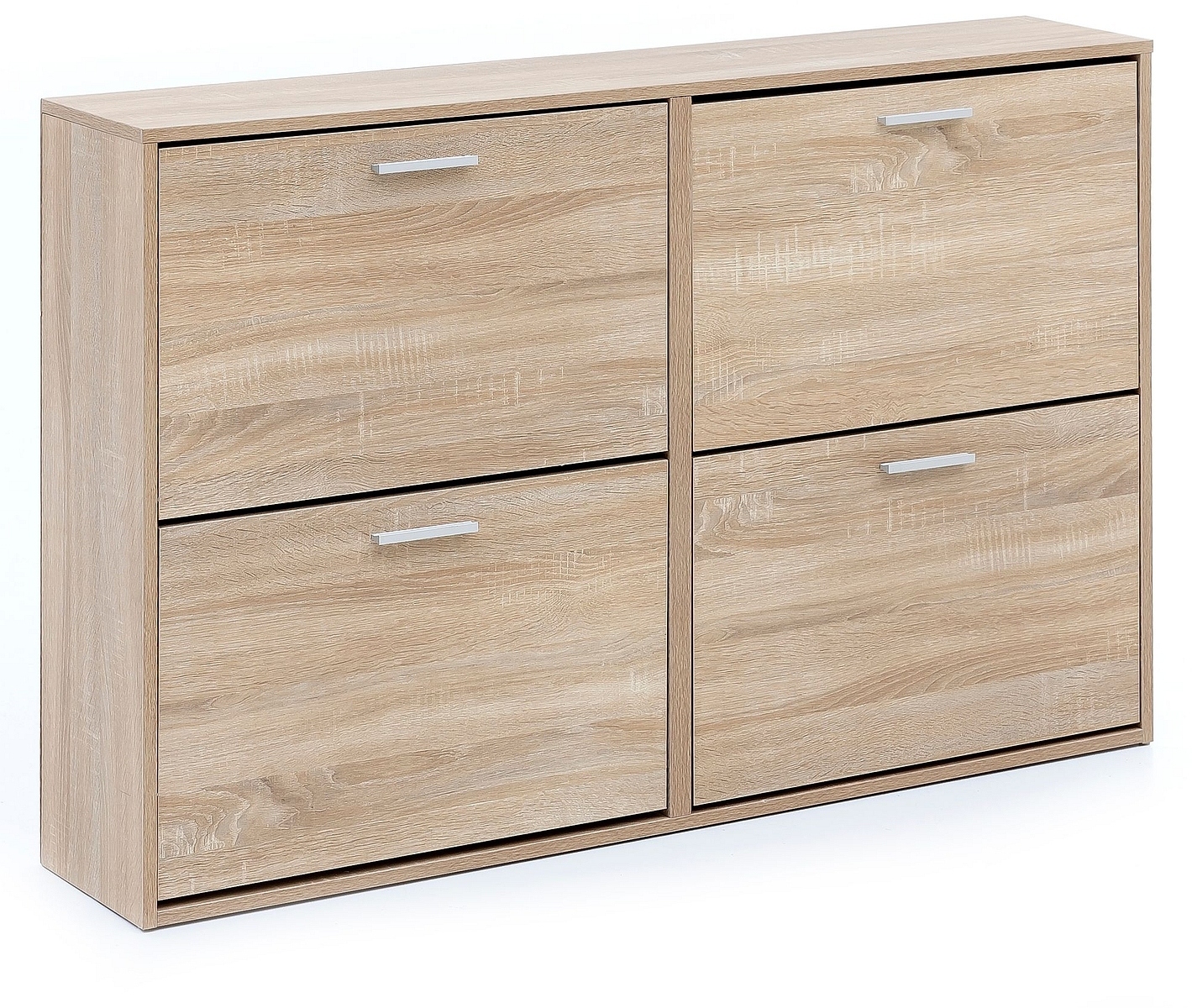 - ORDRE ET MÉTHODE ✔ Notre meuble à chaussures vous permettra d'embellir votre intérieur. Chaque paire de chaussures y trouvera sa place dans l'un des quatre abattants et ne traînera plus au sol. Posez sur le plateau spacieux un joli vase avec des fleurs, un vide-poches ou d'autres décorations et conférez à cette étagère en bois moderne une note personnalisée.