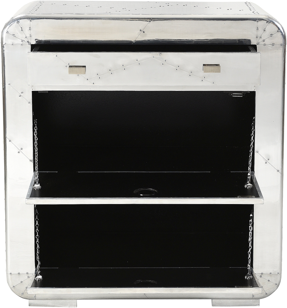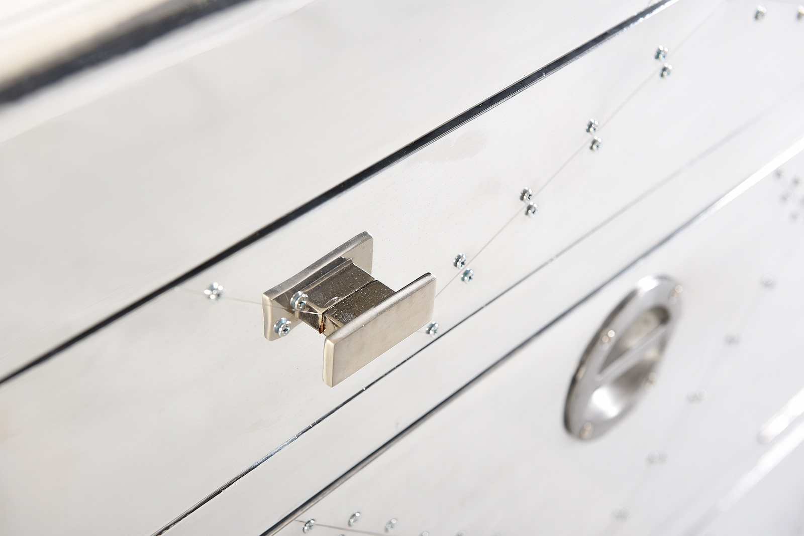 bois de manguier massif (Inde) avec MDF (panneau de fibres de bois de densité moyenne) et ferrures en alu ton argent