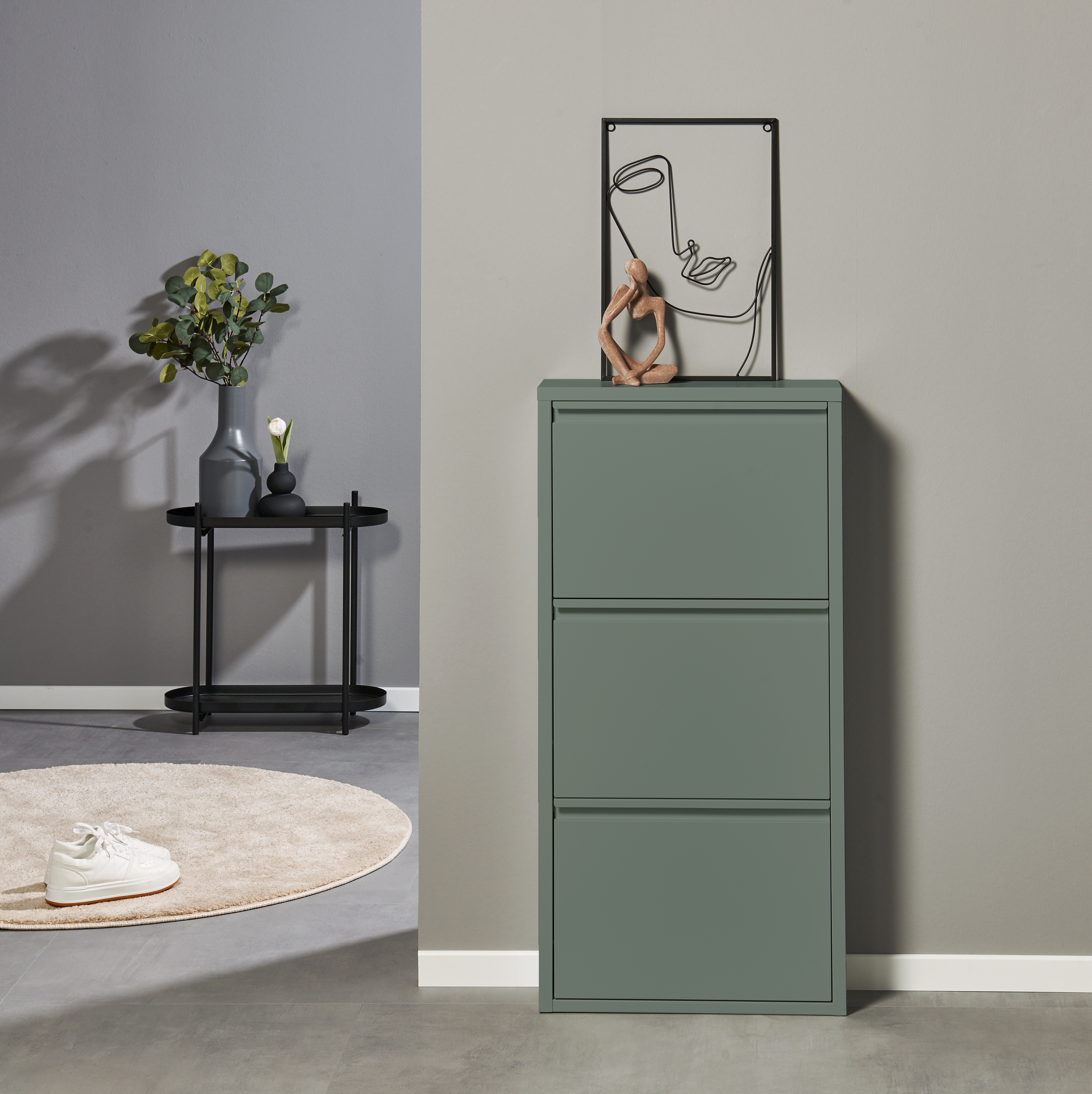 Caisson : ton sauge, métal laqué