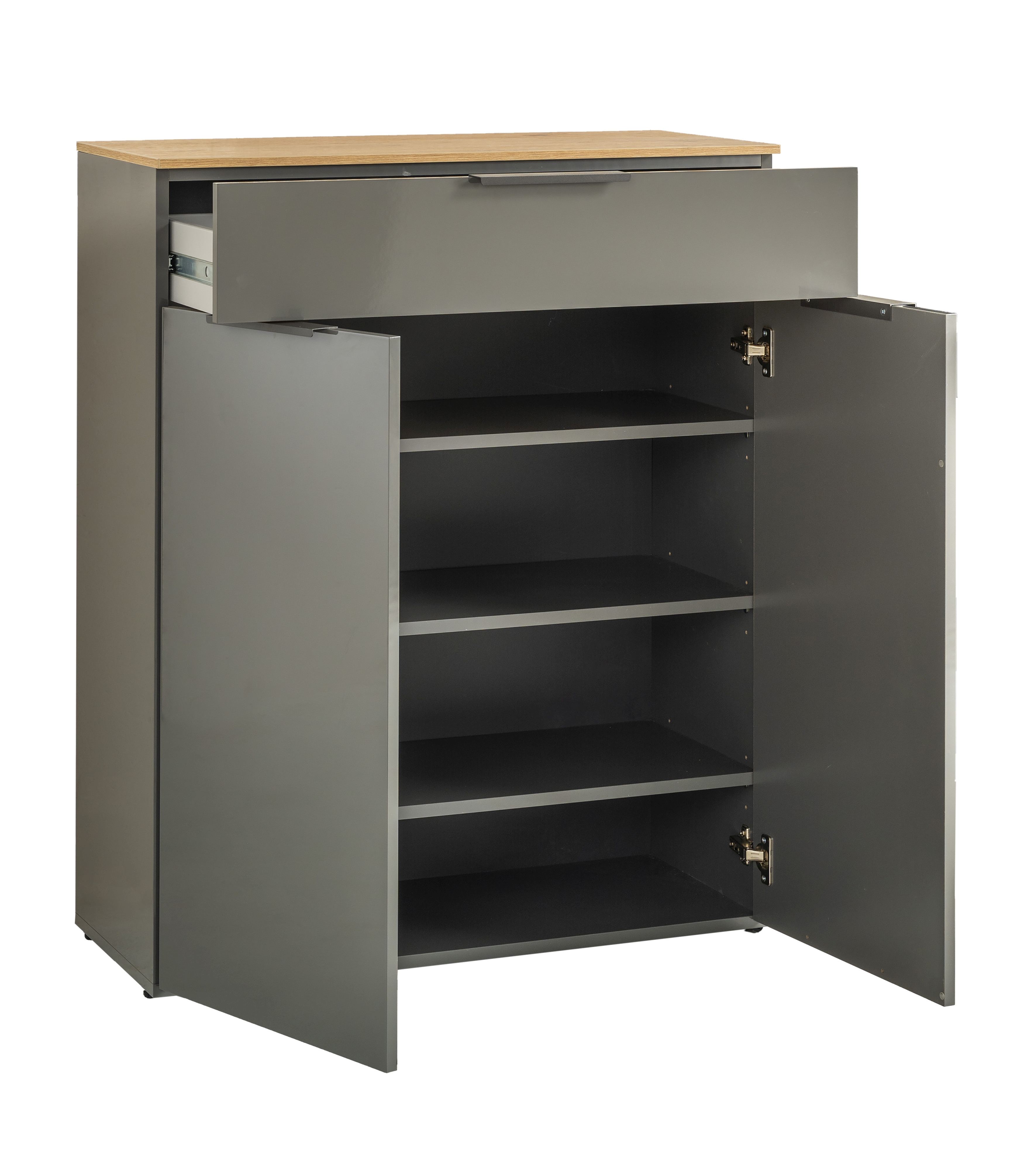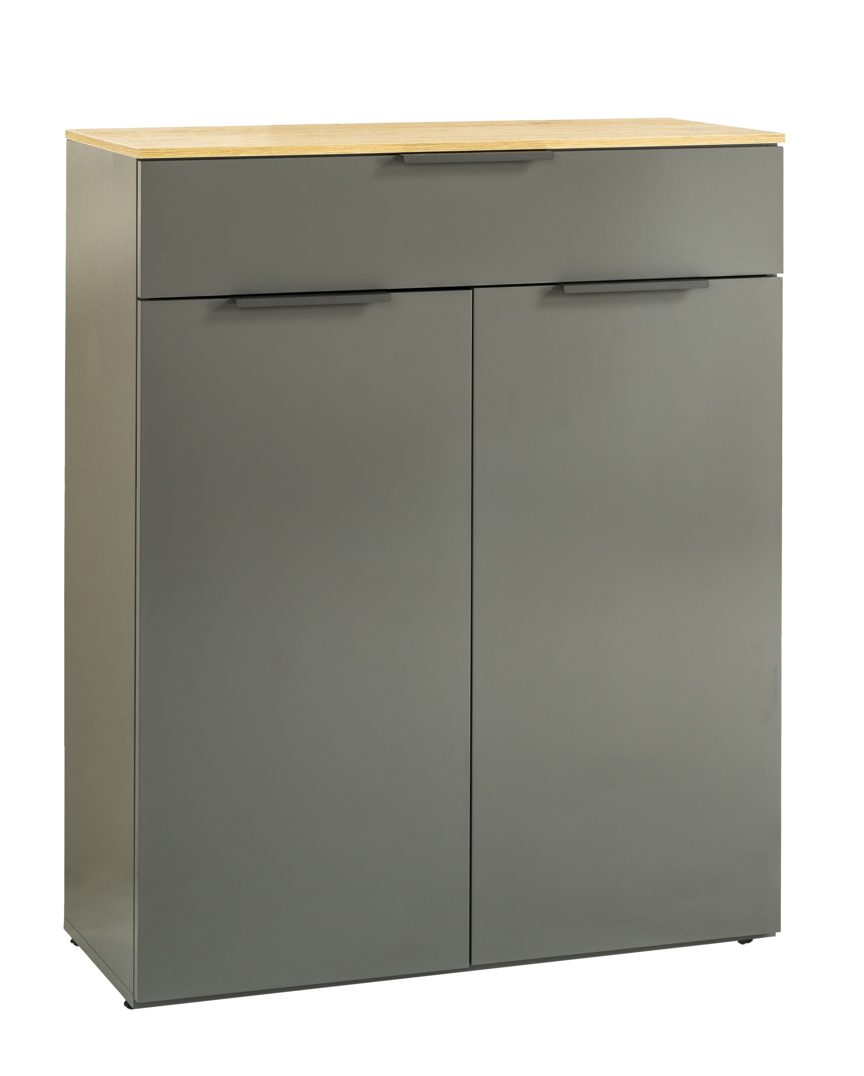 Caisson et façade : décor chêne Artisan et ton gris titane ultra brillant