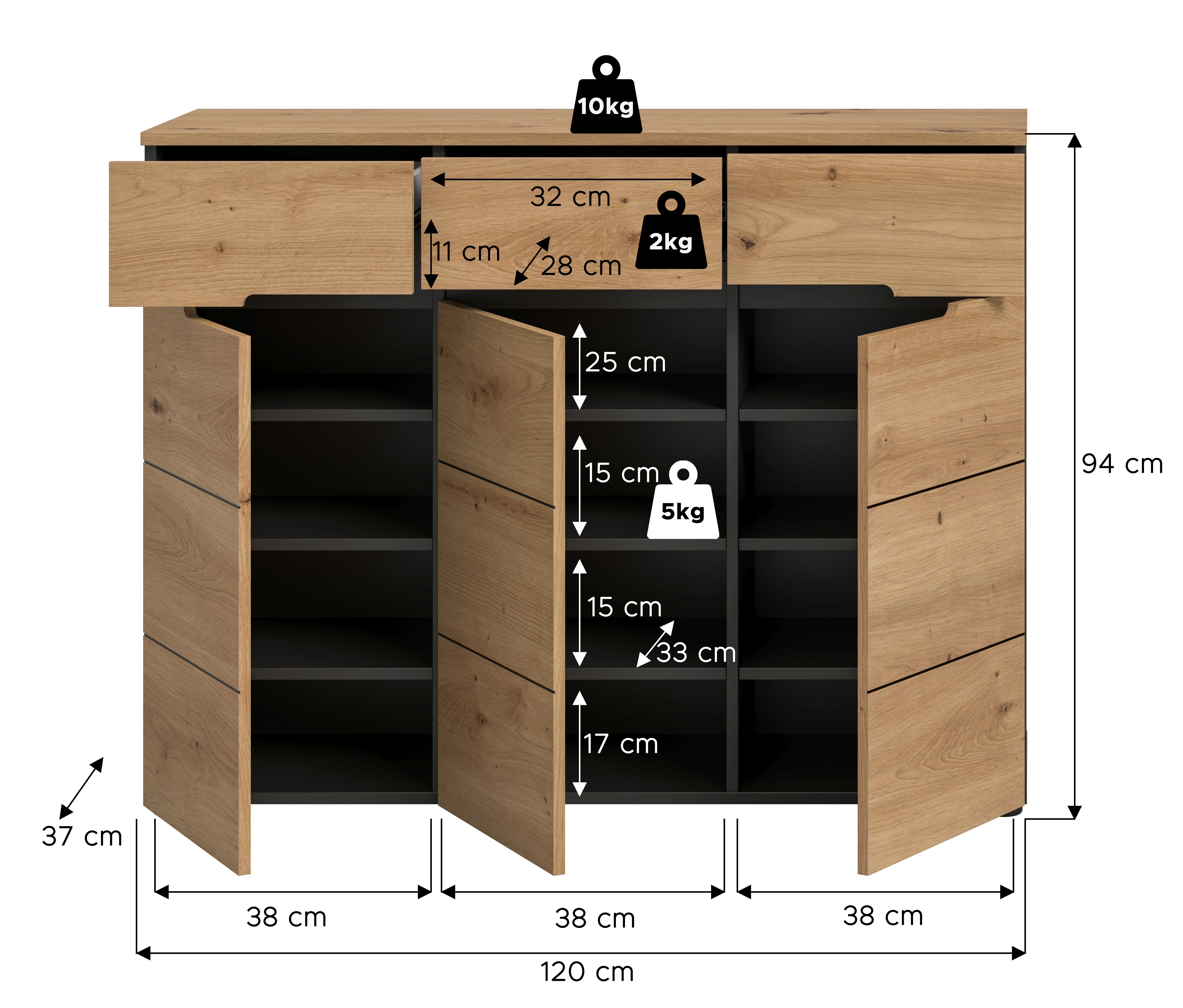 | Dimensions : | L/H/P env. 120/94/37 cm | ||