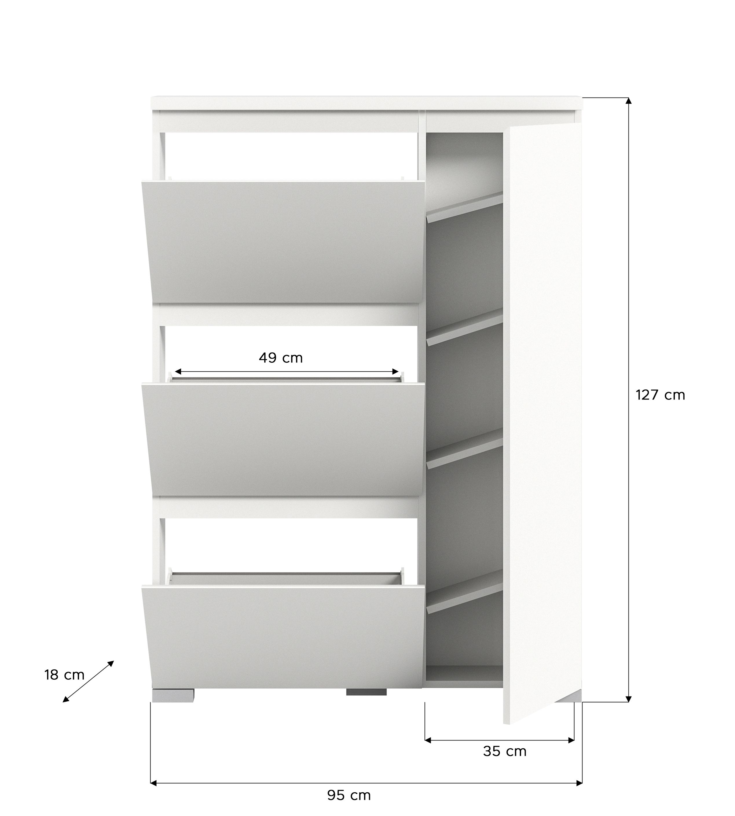 • Qualité/entretien : fabriqué avec des matériaux de qualité, le meuble à chaussures garantit durabilité et robustesse. Le décor blanc, facile d’entretien, se nettoie aisément et conserve son apparence attrayante même en cas d’utilisation fréquente.