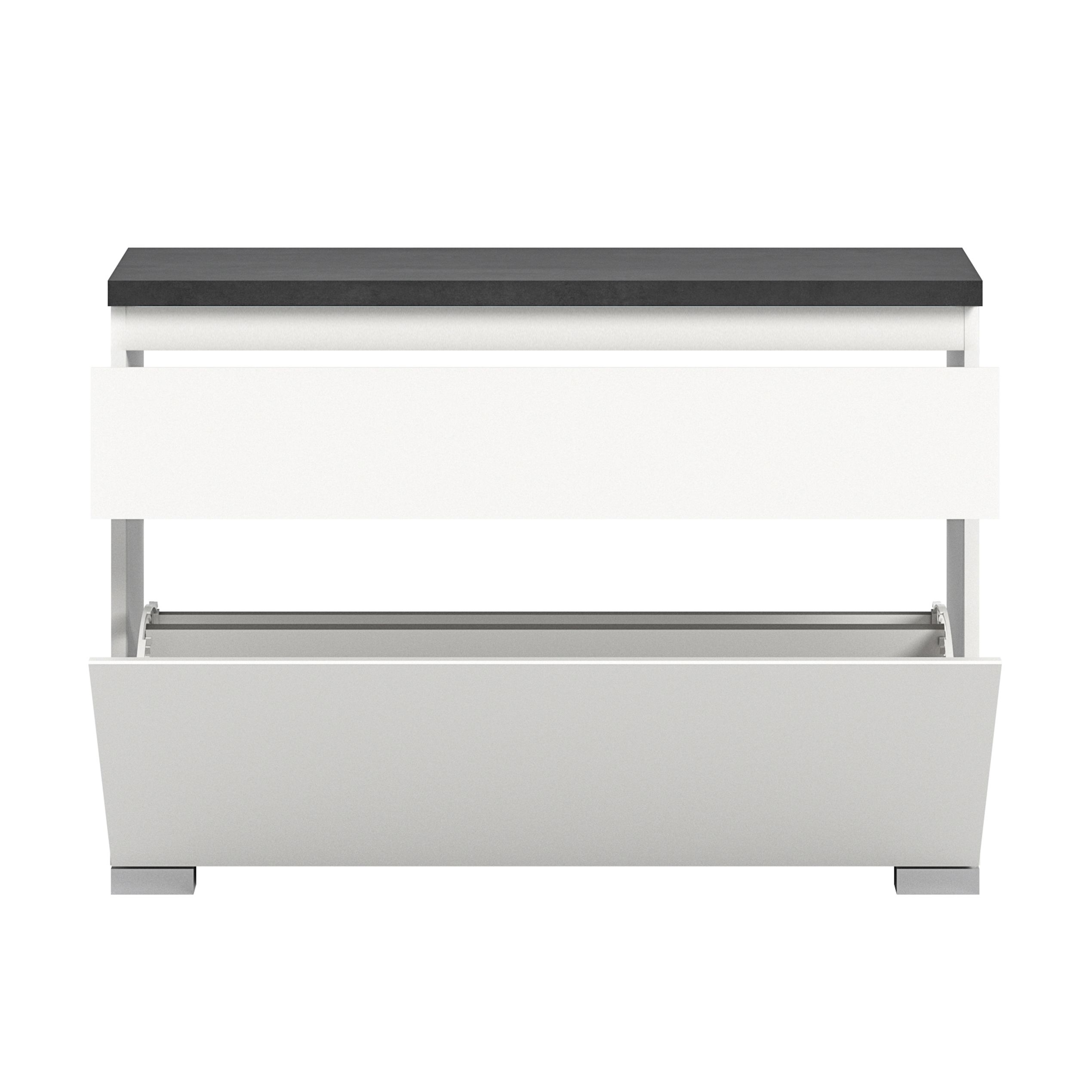 Avec notre série HADERO, découvrez ce meuble à chaussures à abattants combinable : il est proposé dans un style élégant et intemporel ton blanc avec plateau supérieur ton gris industriel et apportera une touche moderne à votre entrée. Grâce à sa conception polyvalente, vous pourrez l’adapter à vos besoins pour organiser votre collection de chaussures de façon stylée. Profitez de l’alliance parfaite entre fonctionnalité et design avec ce meuble à chaussures flexible.