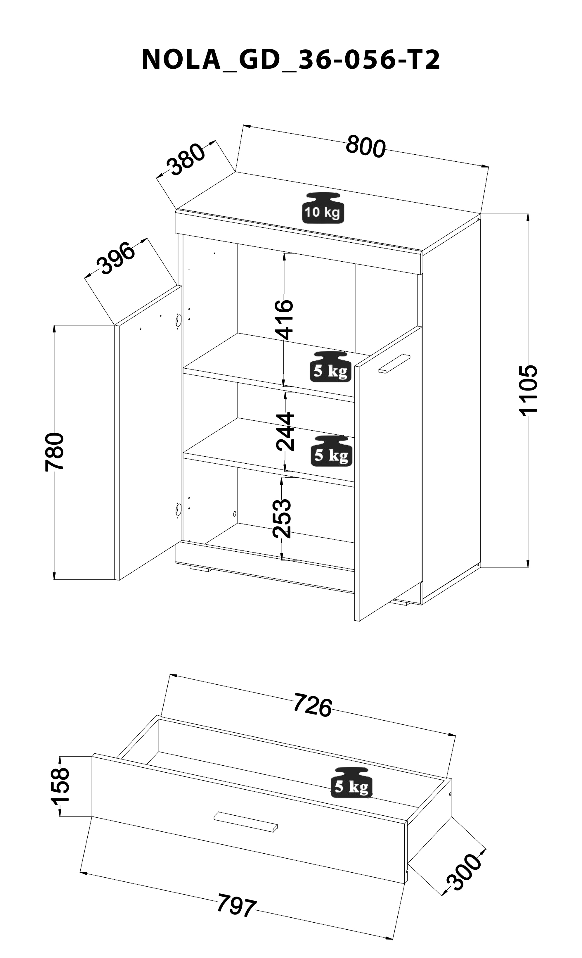 | Ausstattung Kommoden Phono Büro Regal: | Portes, Tiroirs | ||