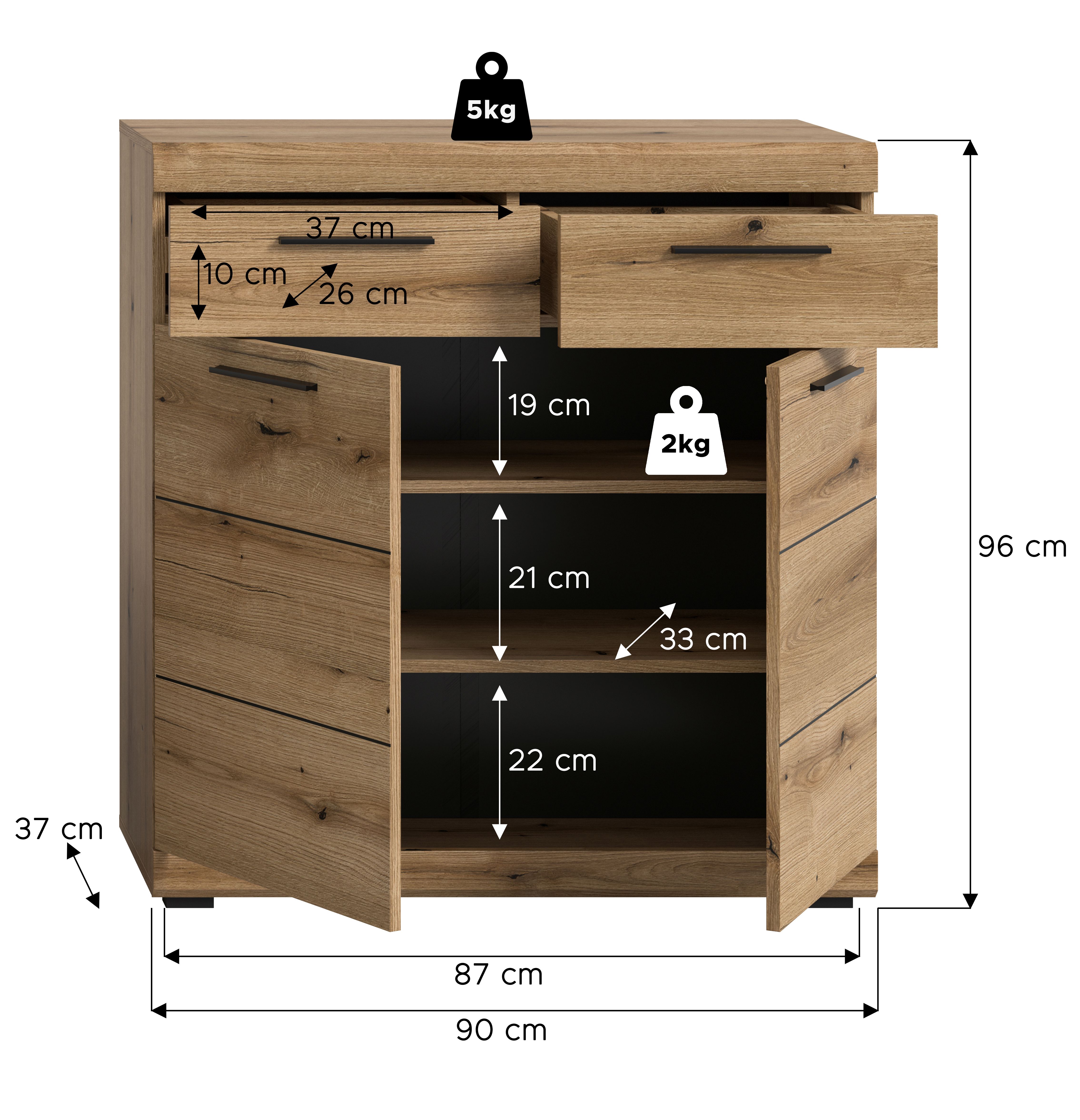 Dimensions : | L/H/P env. 90/96/37 cm |